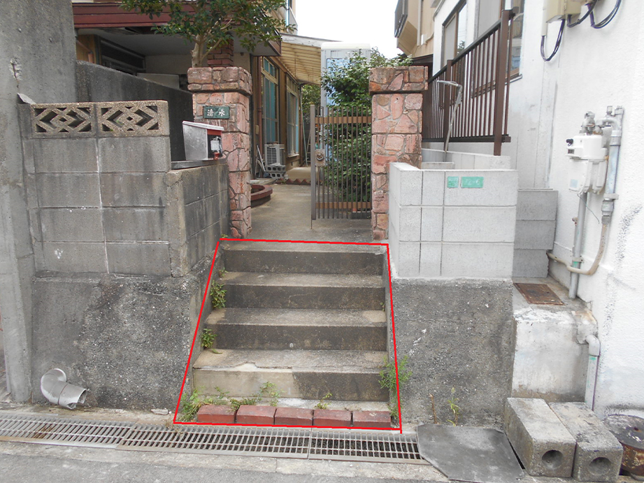 ・赤枠で囲った部分の階段の状態が良くないので改修しました。