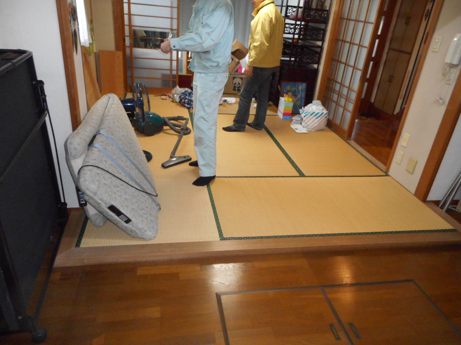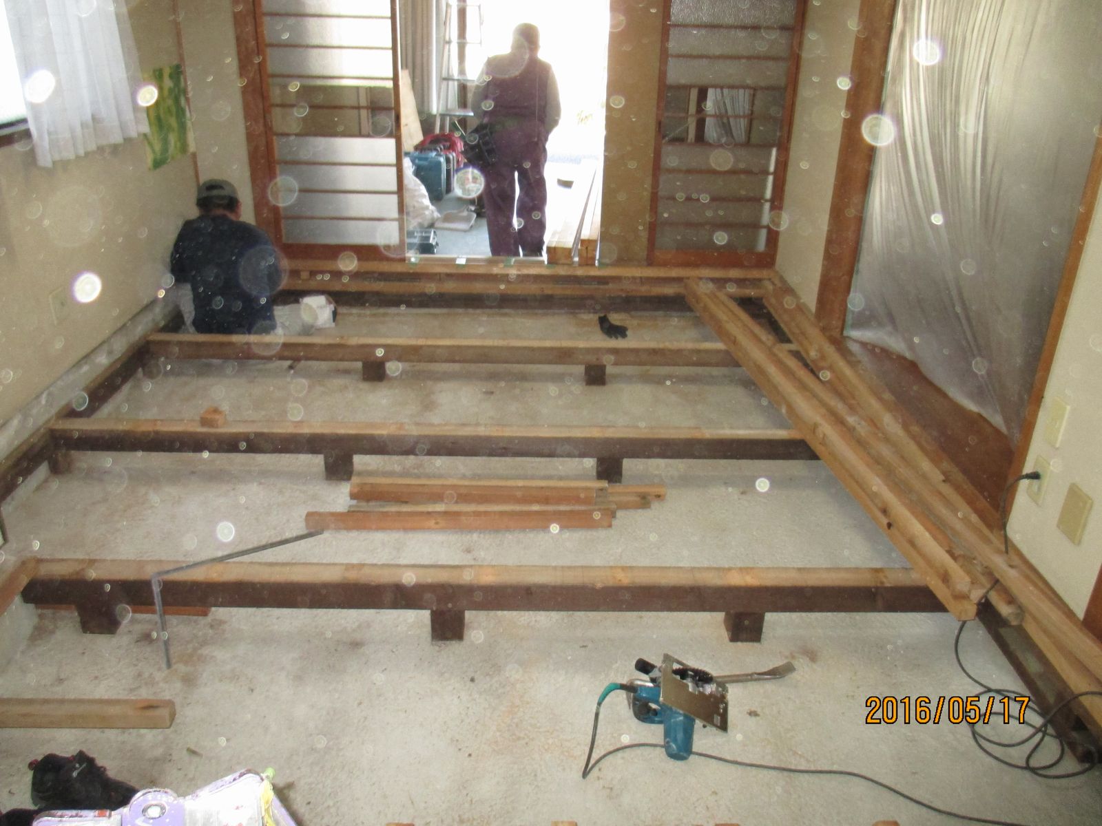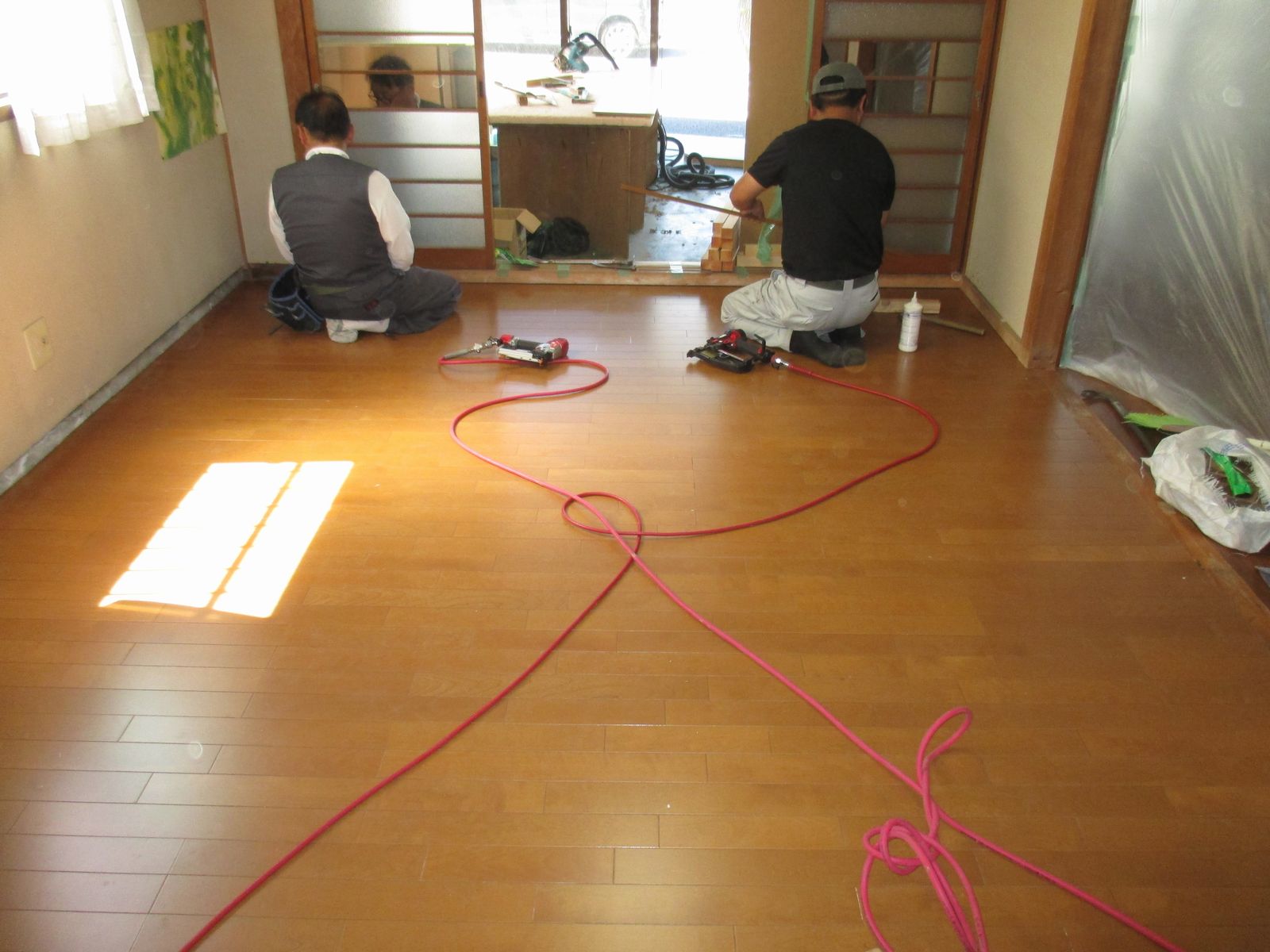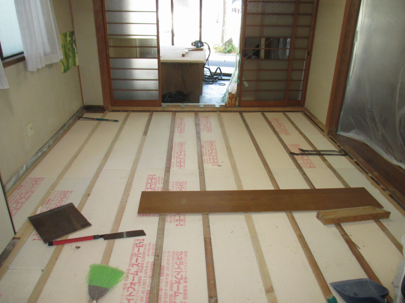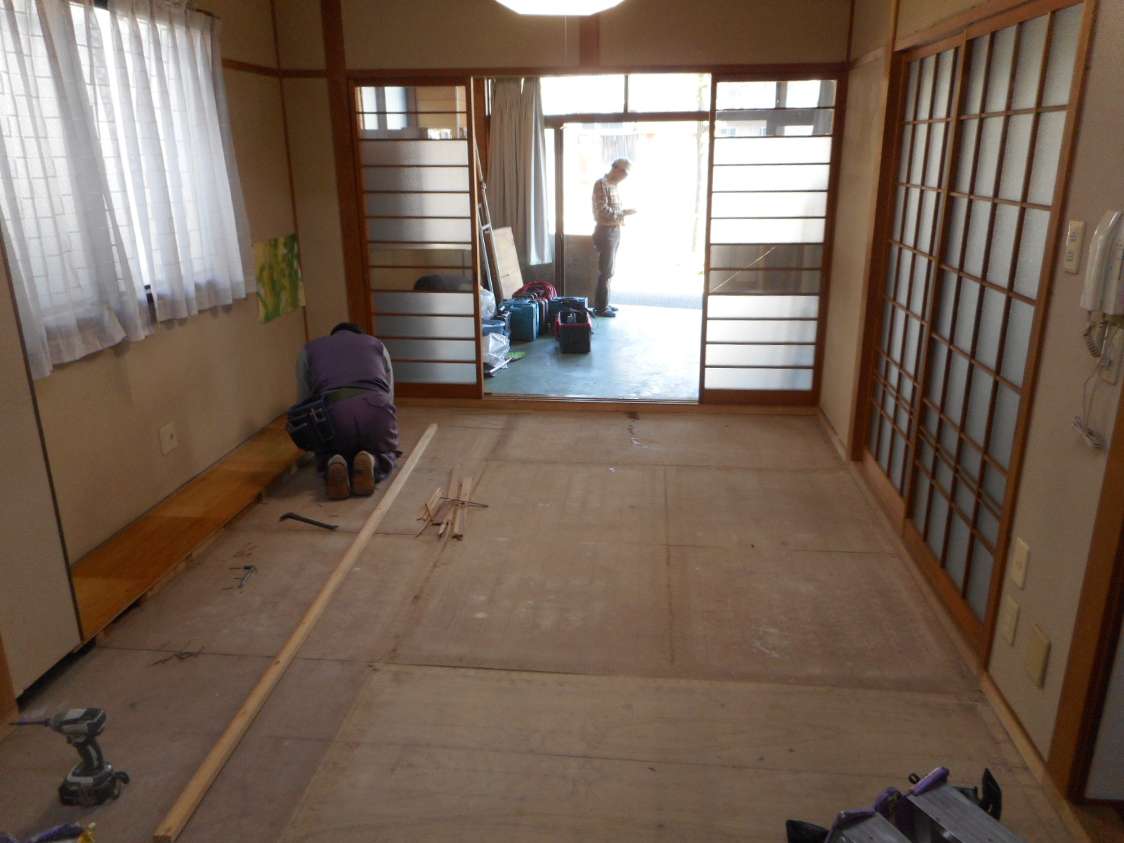 その1階の部屋は一部に畳が敷かれていて、廊下から入る場合と、板張りの部分との間に段差があるので、これらを解消するために全面板張りにして段差の改修が出来なきかと言う相談がありました。