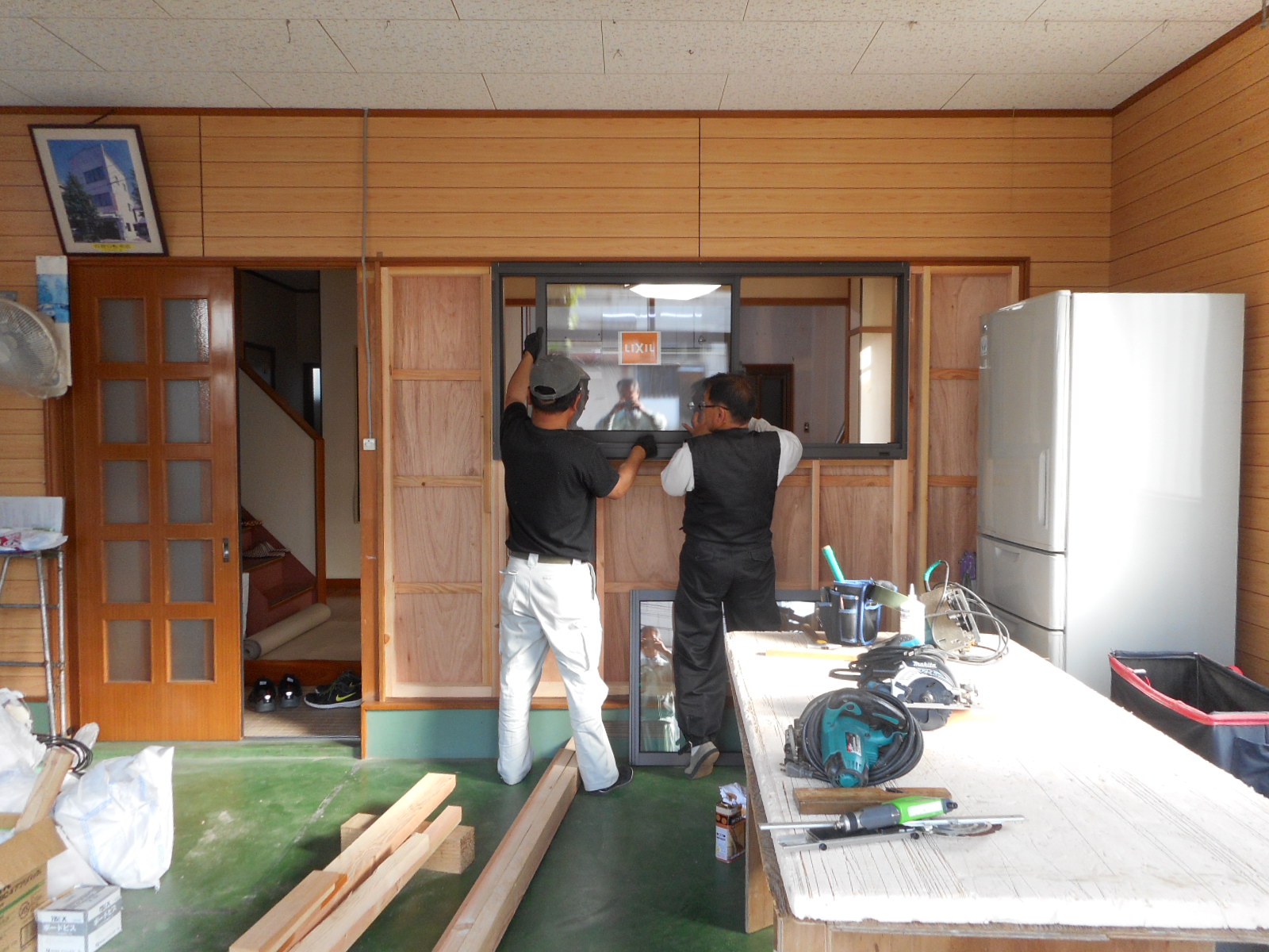 *次は元店舗側(入り口側)の室内用の掃出しの引き違い戸をアルミの中連サッシに交換します。