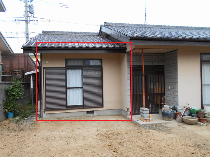 *工事前の外観です!!(赤枠で囲った部分が増築する和室部分です)
