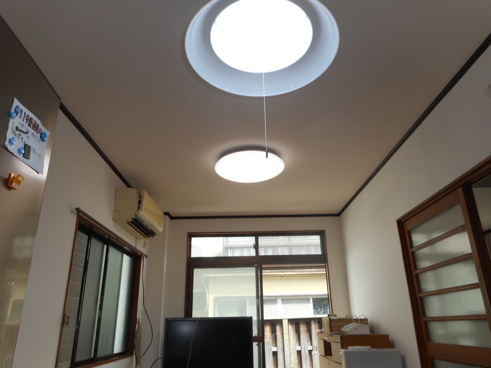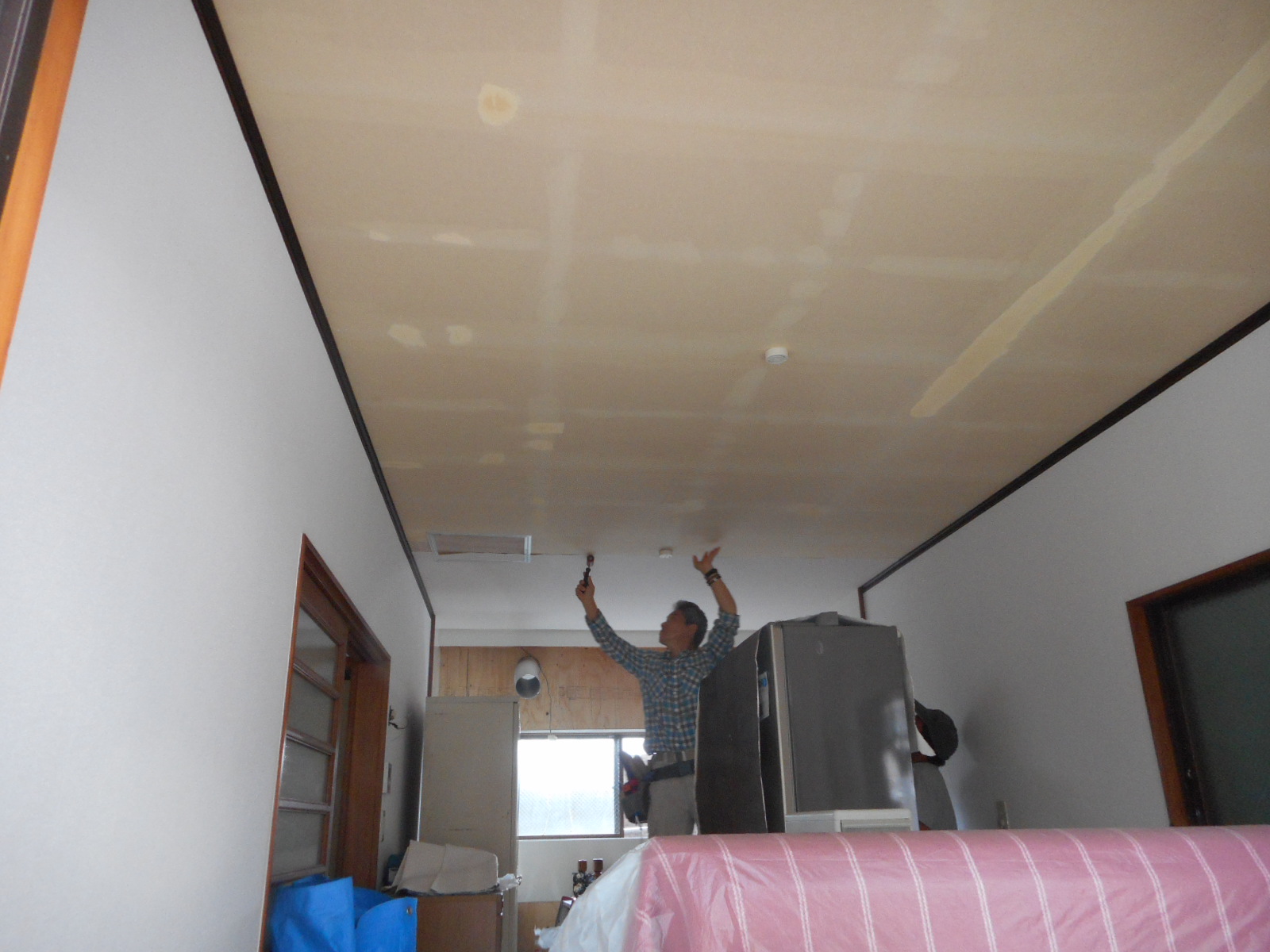 | 壁廻りのクロスを張って行きます!! | 天井のクロスを張ります!! |