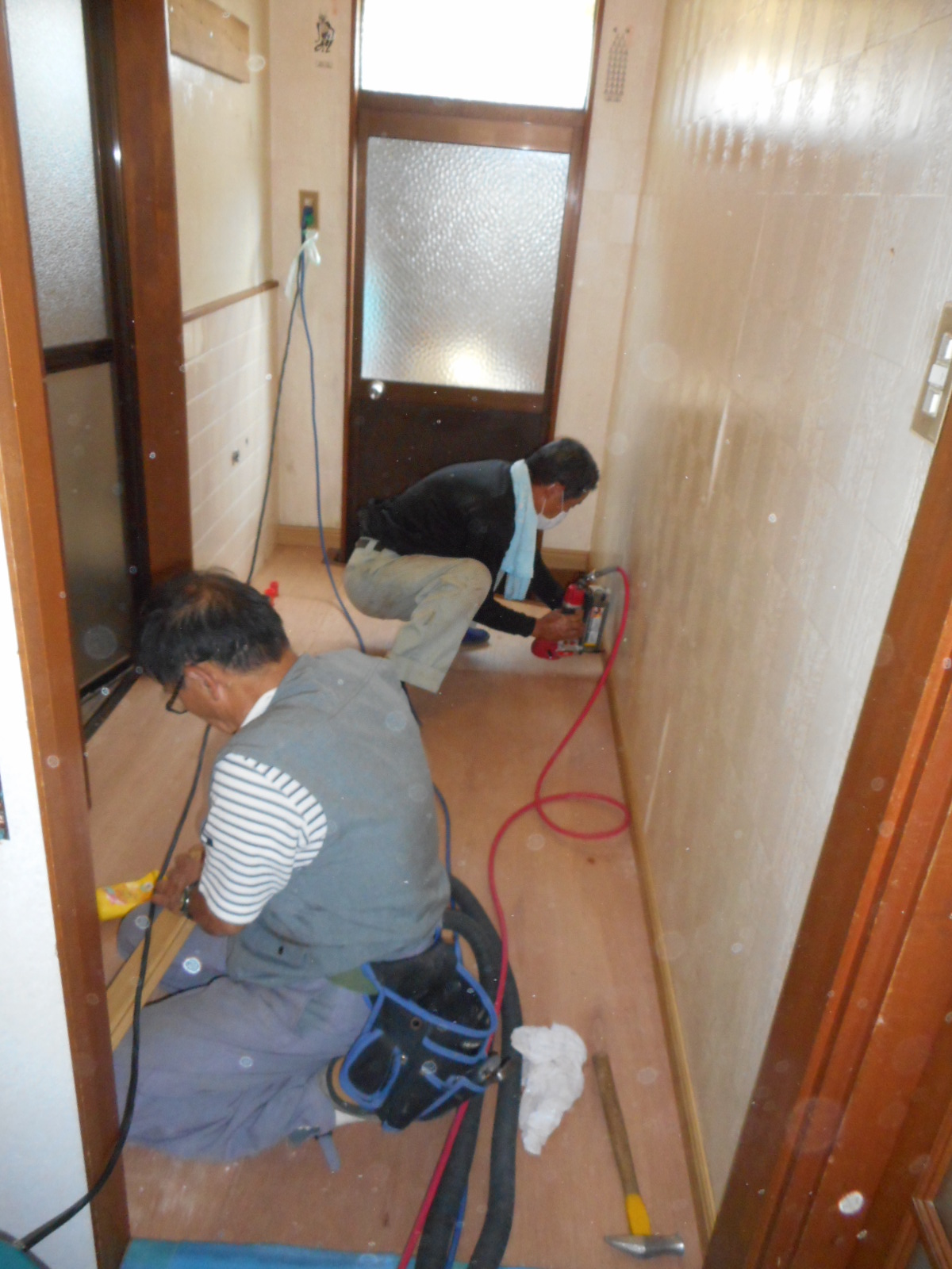 | コンパネを施工しました!! | 巾木を取付けます!! |