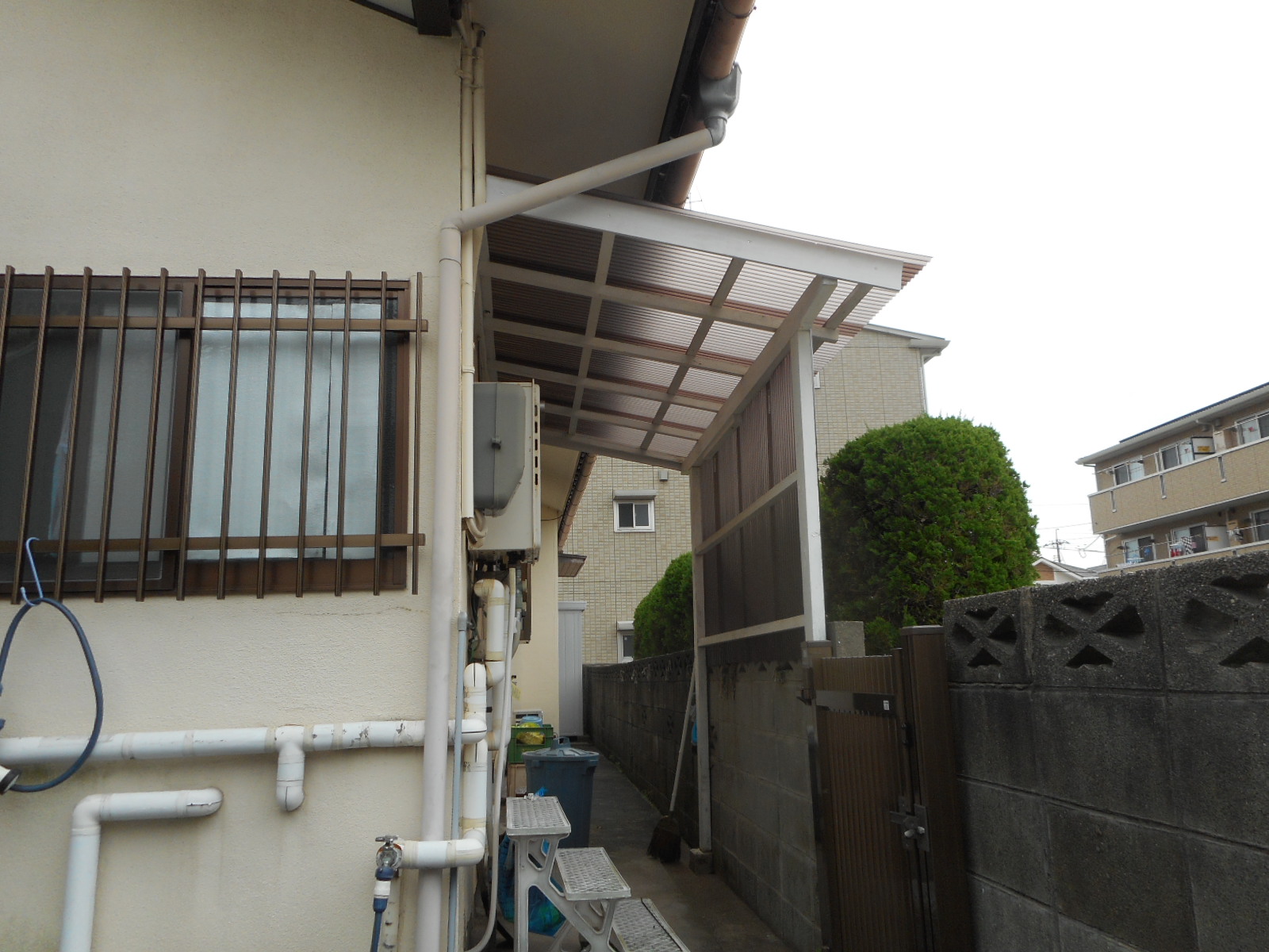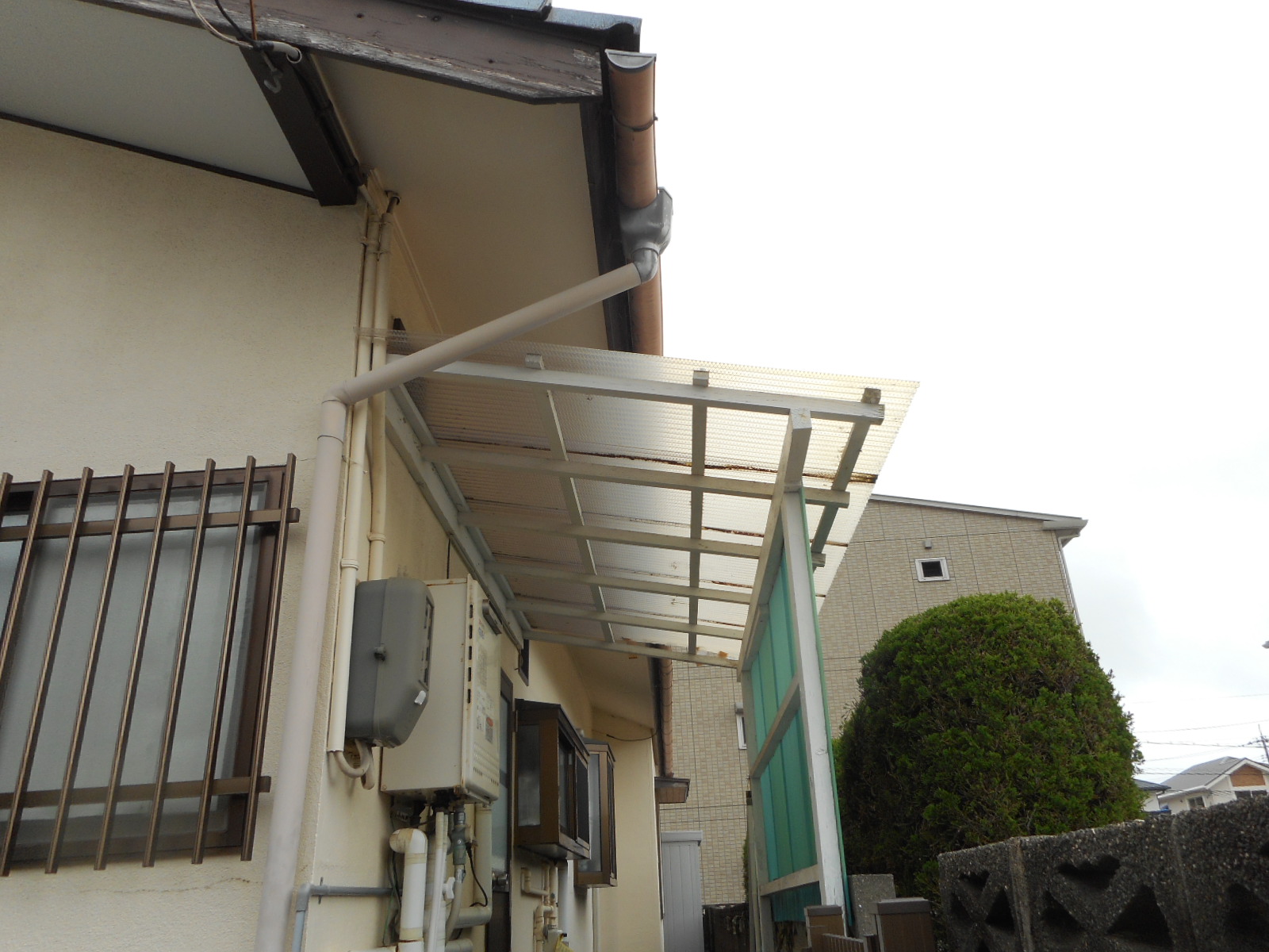 工事前(屋根と前面の波板の状態が悪いので張替えます)!!