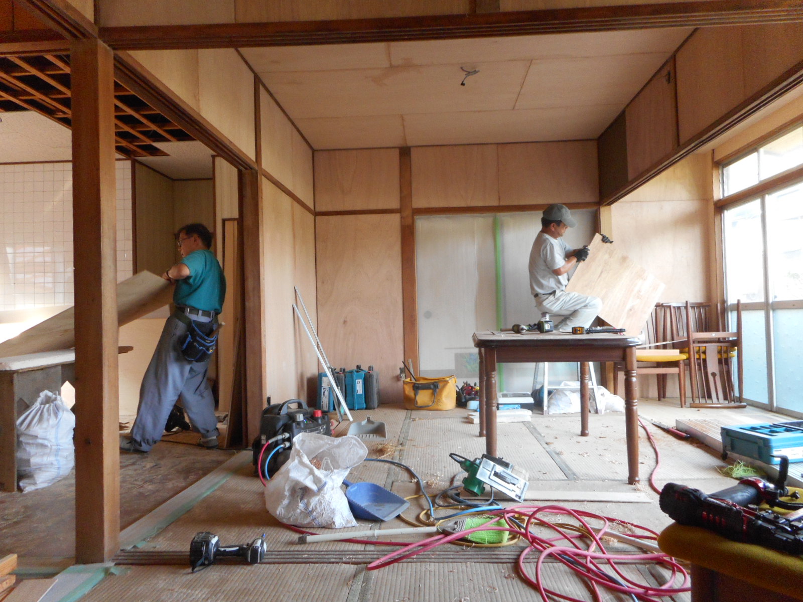 現在、安岡町で中古住宅を購入した方からの依頼で、5/10からスタートし7/10の完成をめざして大改装工事を行っています。