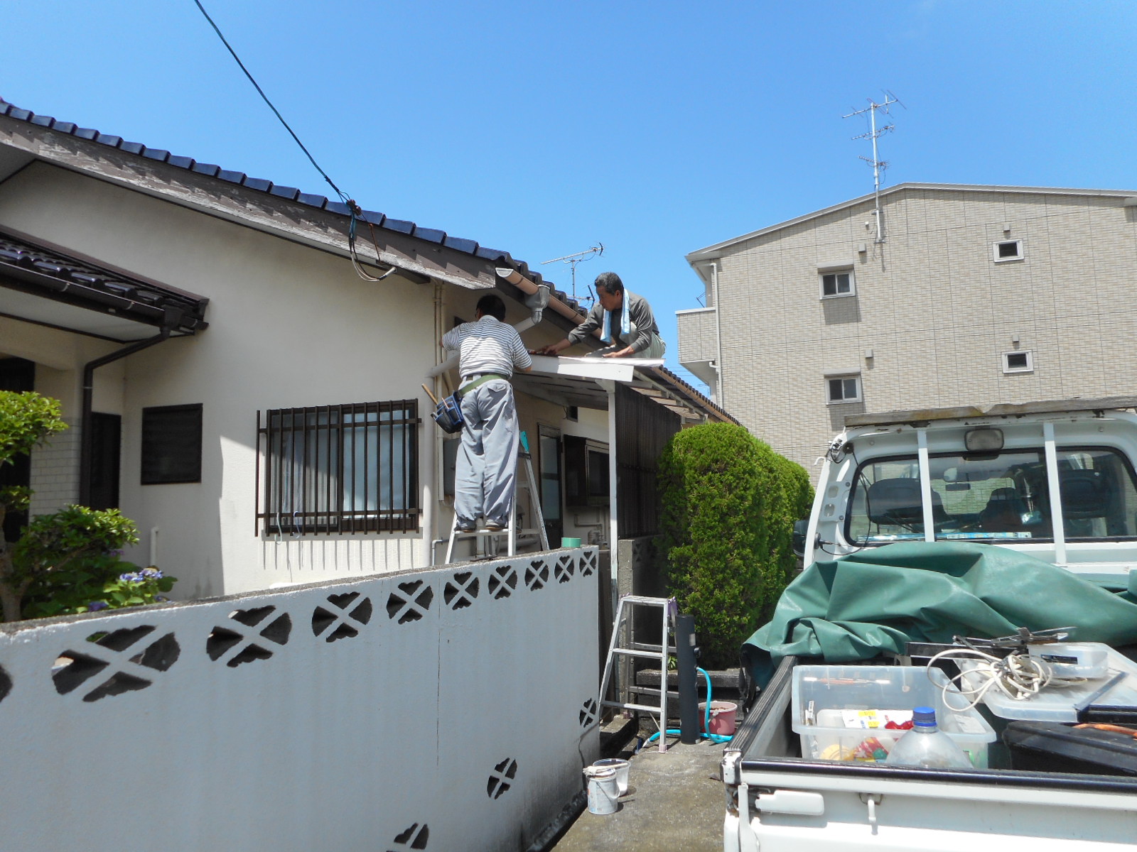 *軒天補修工事。