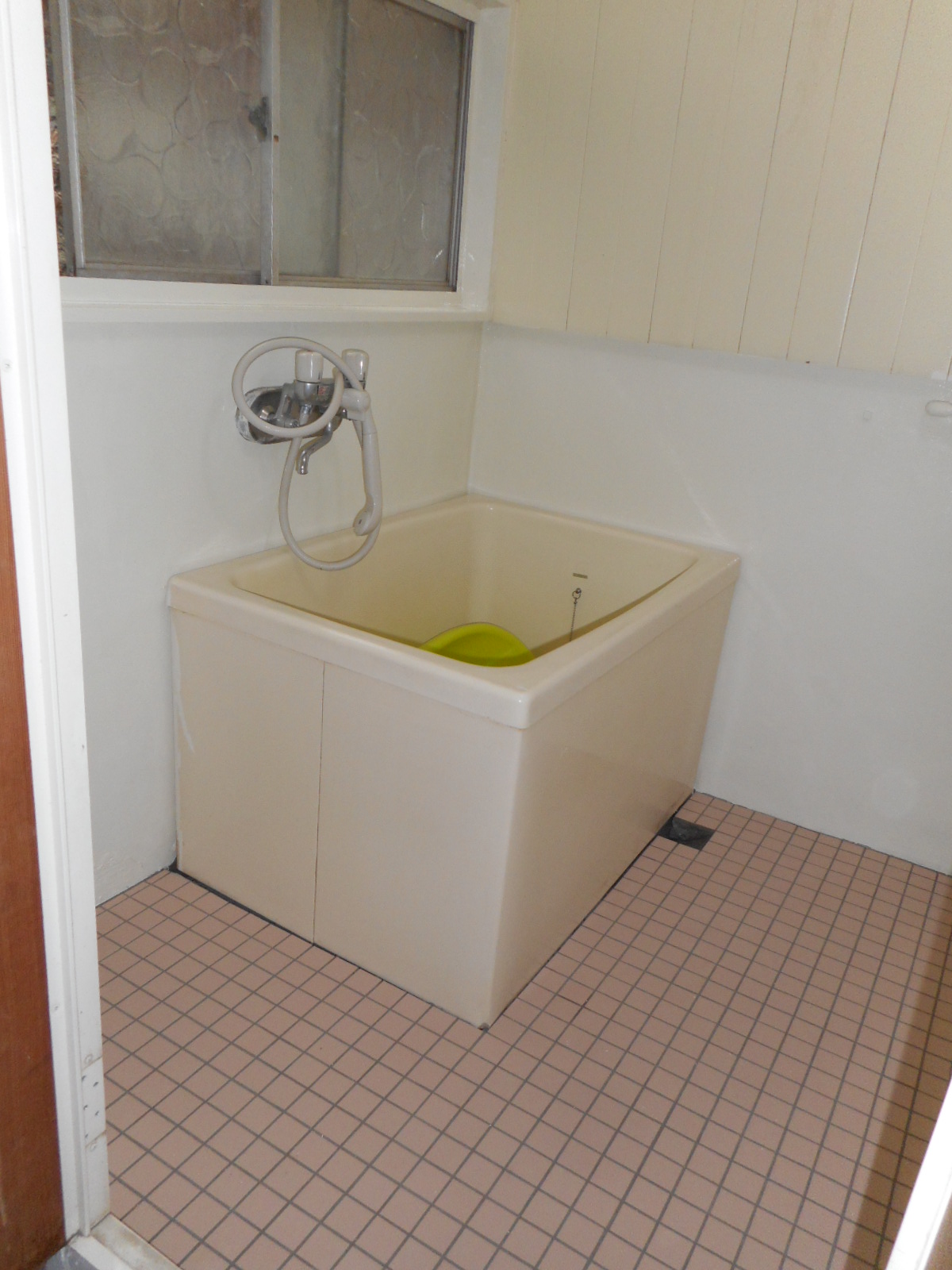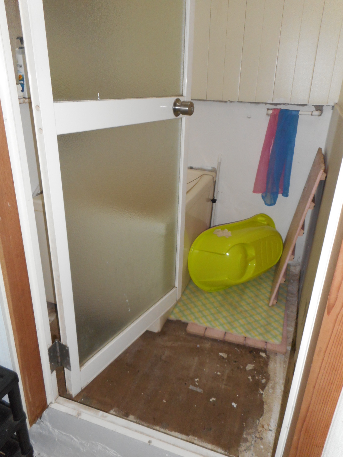 外の洗面所側から見る!! 浴室の中から入り口(洗面所側)を見る!!