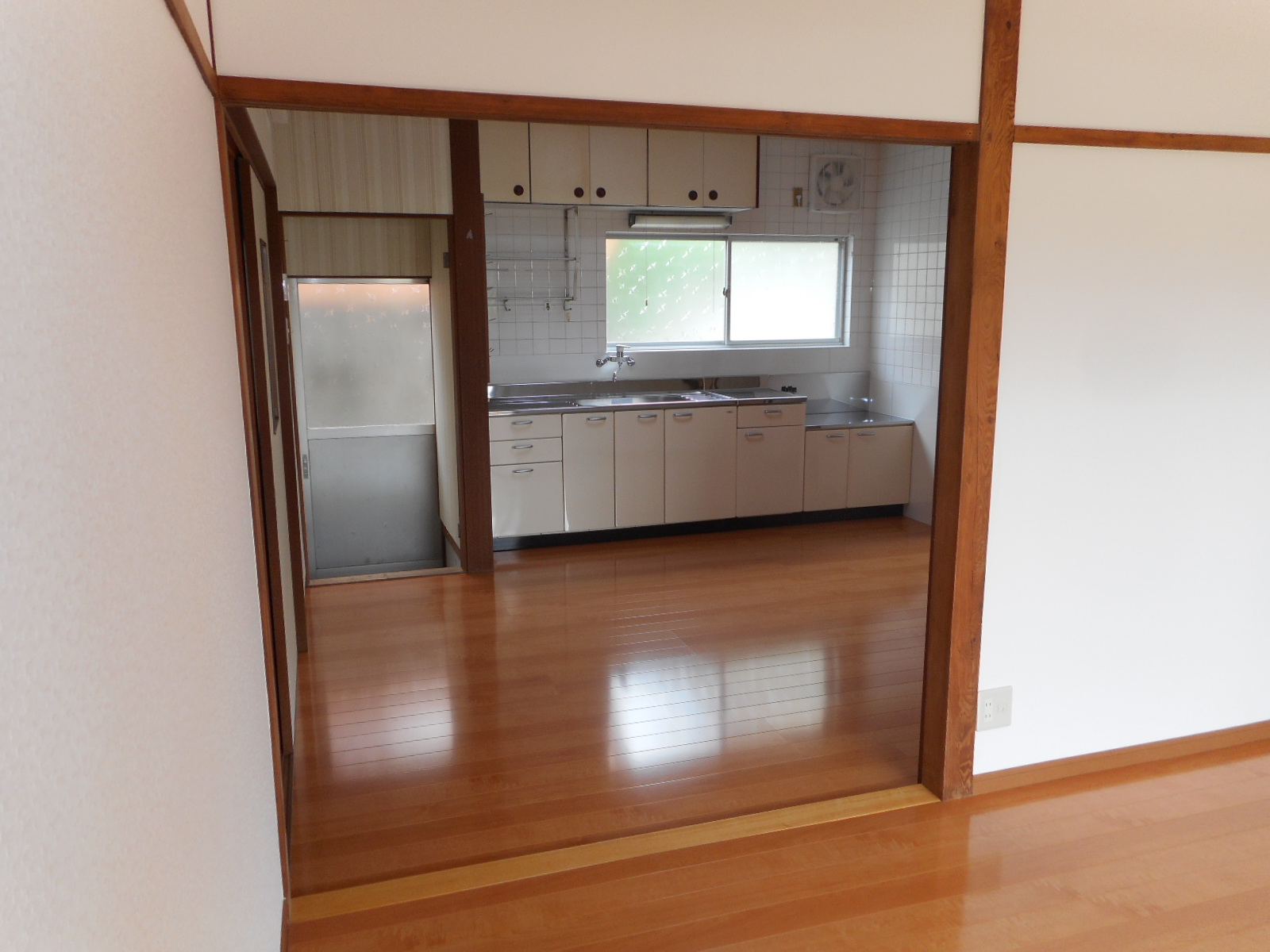 | 工事前を、6畳間から台所側を見る(左側が台所です)!! → | 完成を、6畳間から台所側を見る!! |