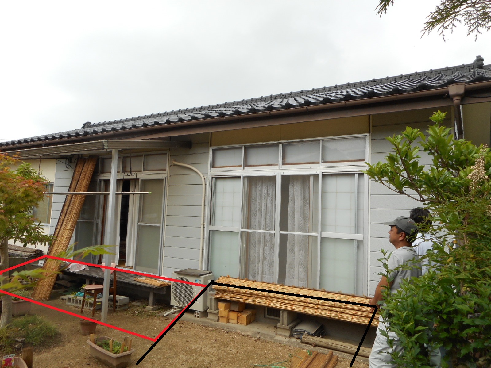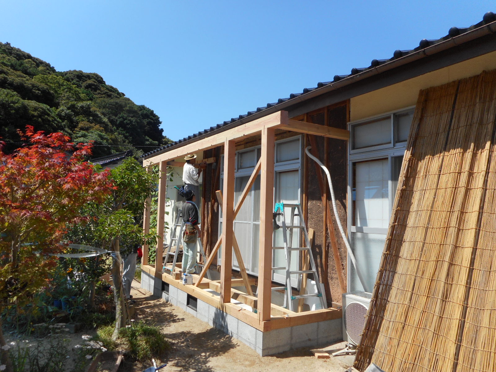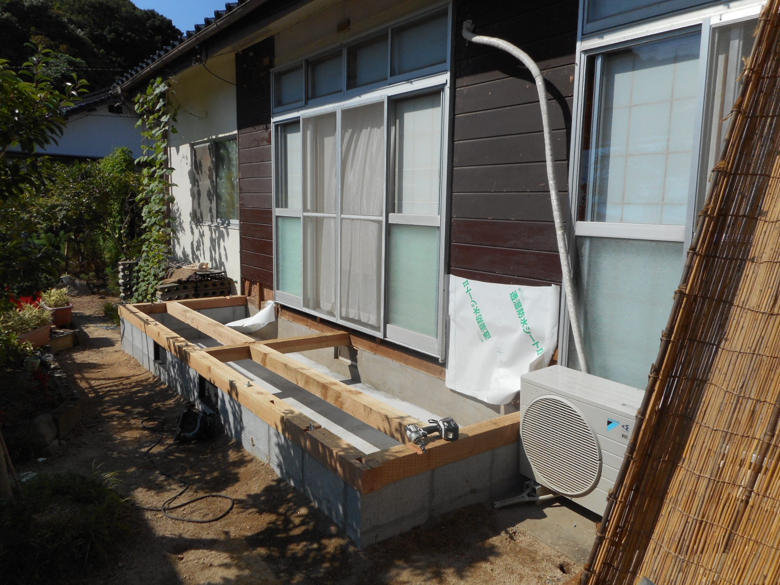 豊浦町川棚で、3年前に流し台の入替え工事をやらせて頂いた方から、今度は広縁の増築と