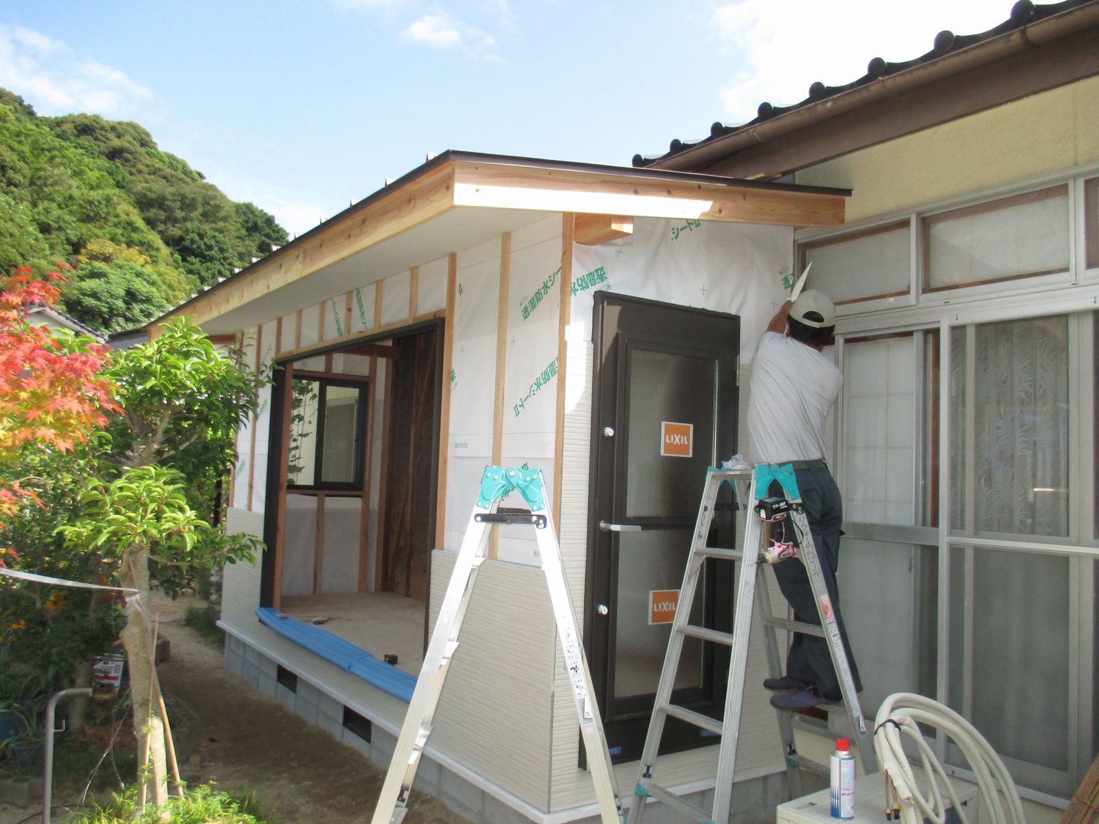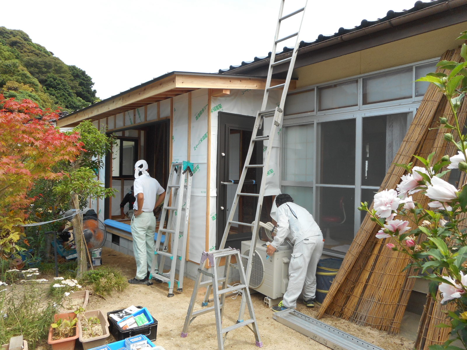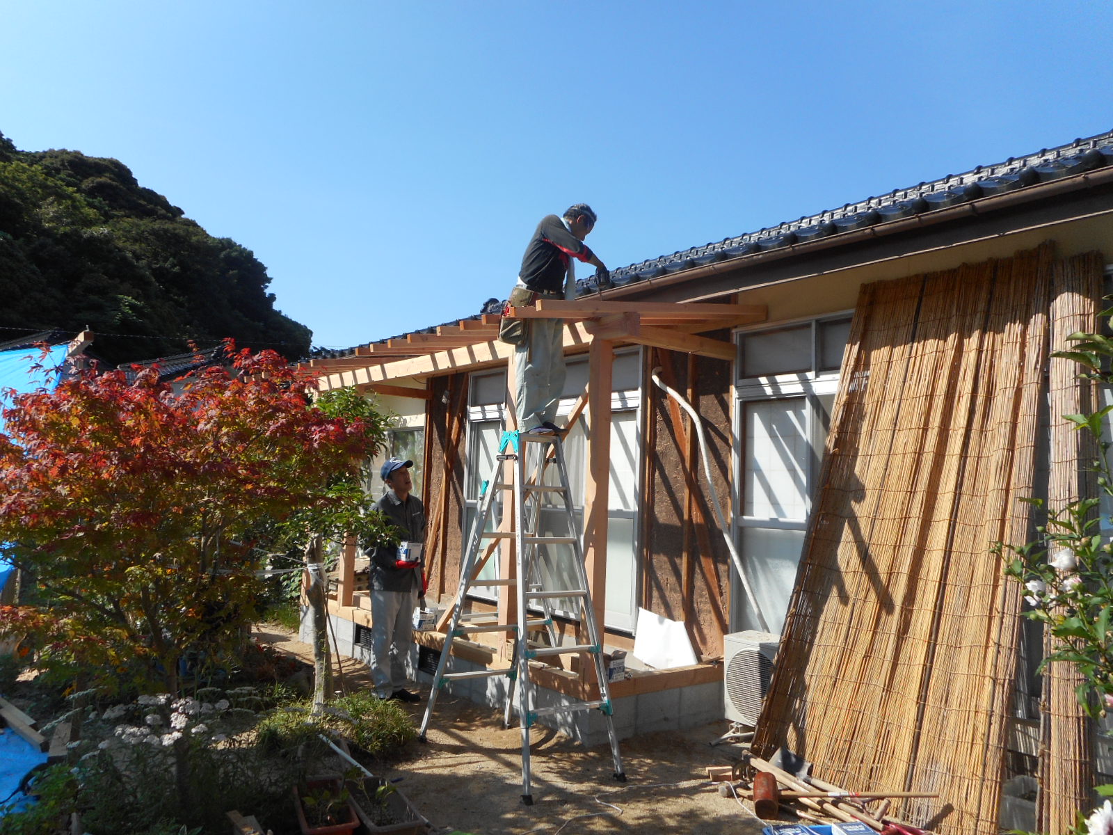 豊浦町川棚で、3年前に流し台の入替え工事をやらせて頂いた方から、今度は広縁の増築と