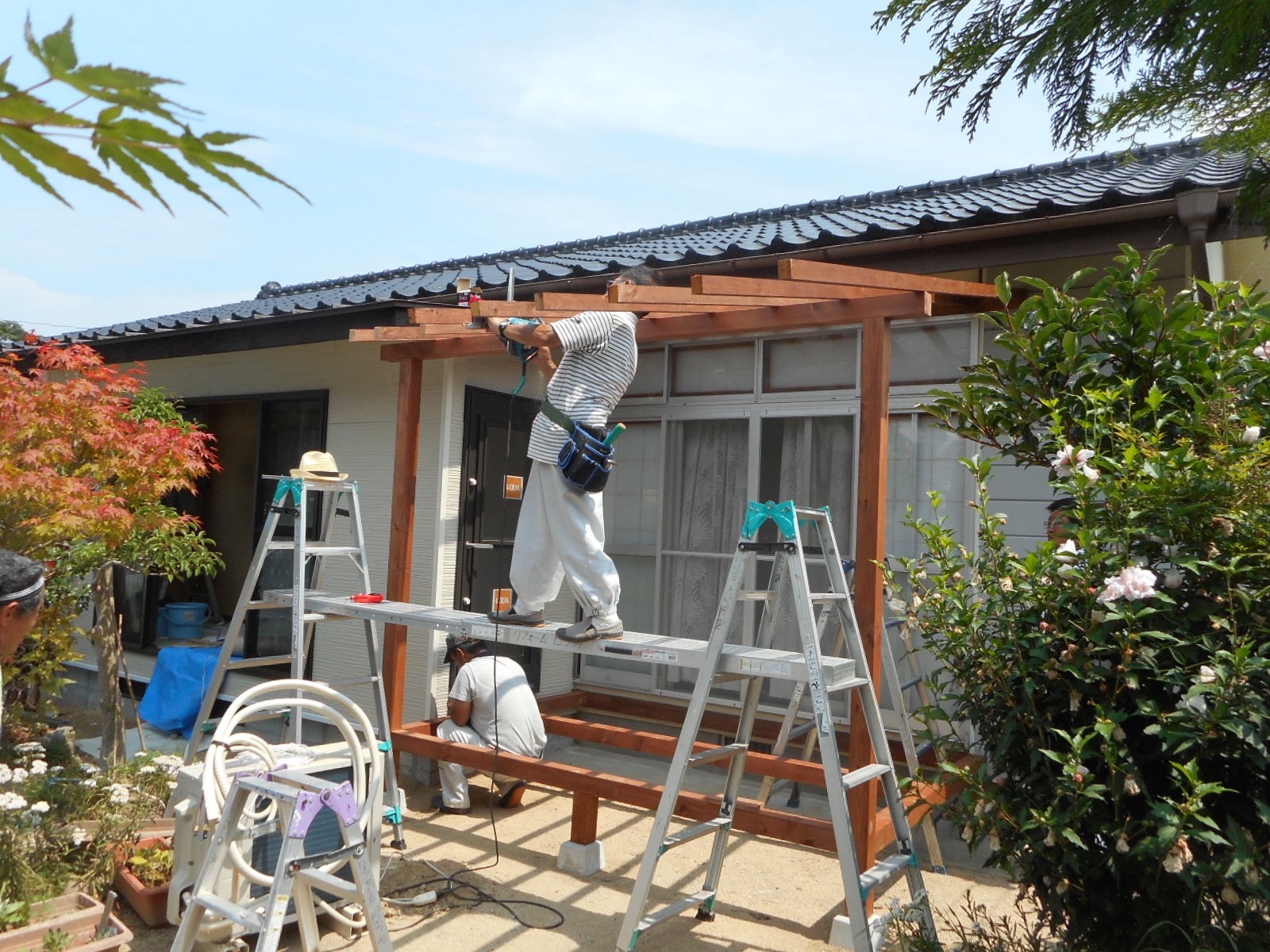 ※前回のブログで紹介した、川棚某邸の広縁増築工事を行ったつづきの工事として、ウッドデッキとテラスの