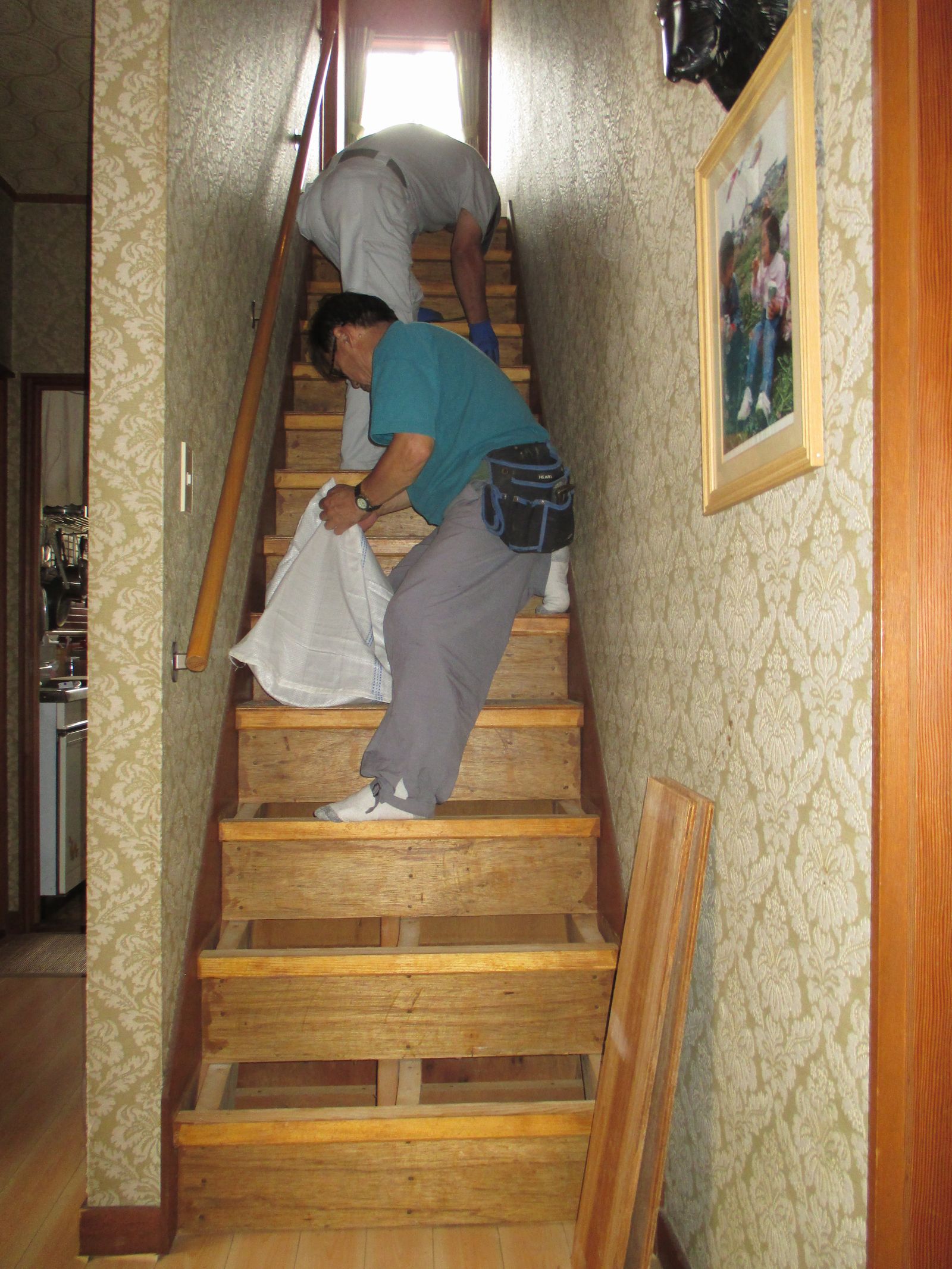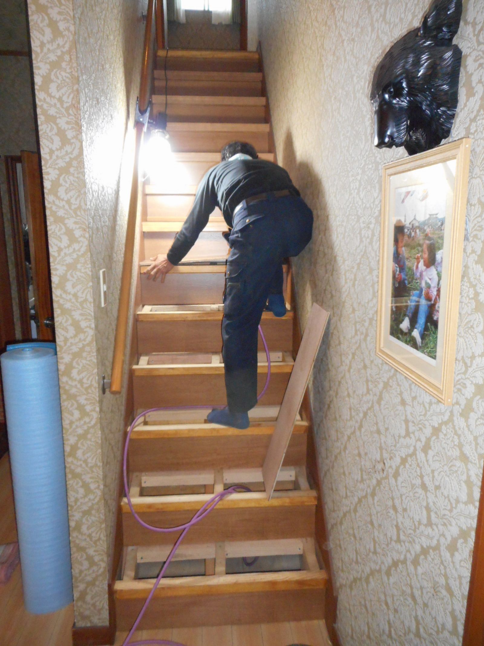 ジュウタンや既存の踏み板&蹴込板等を撤去します!! 新規の踏み板&蹴込板等を施工して行きます!!