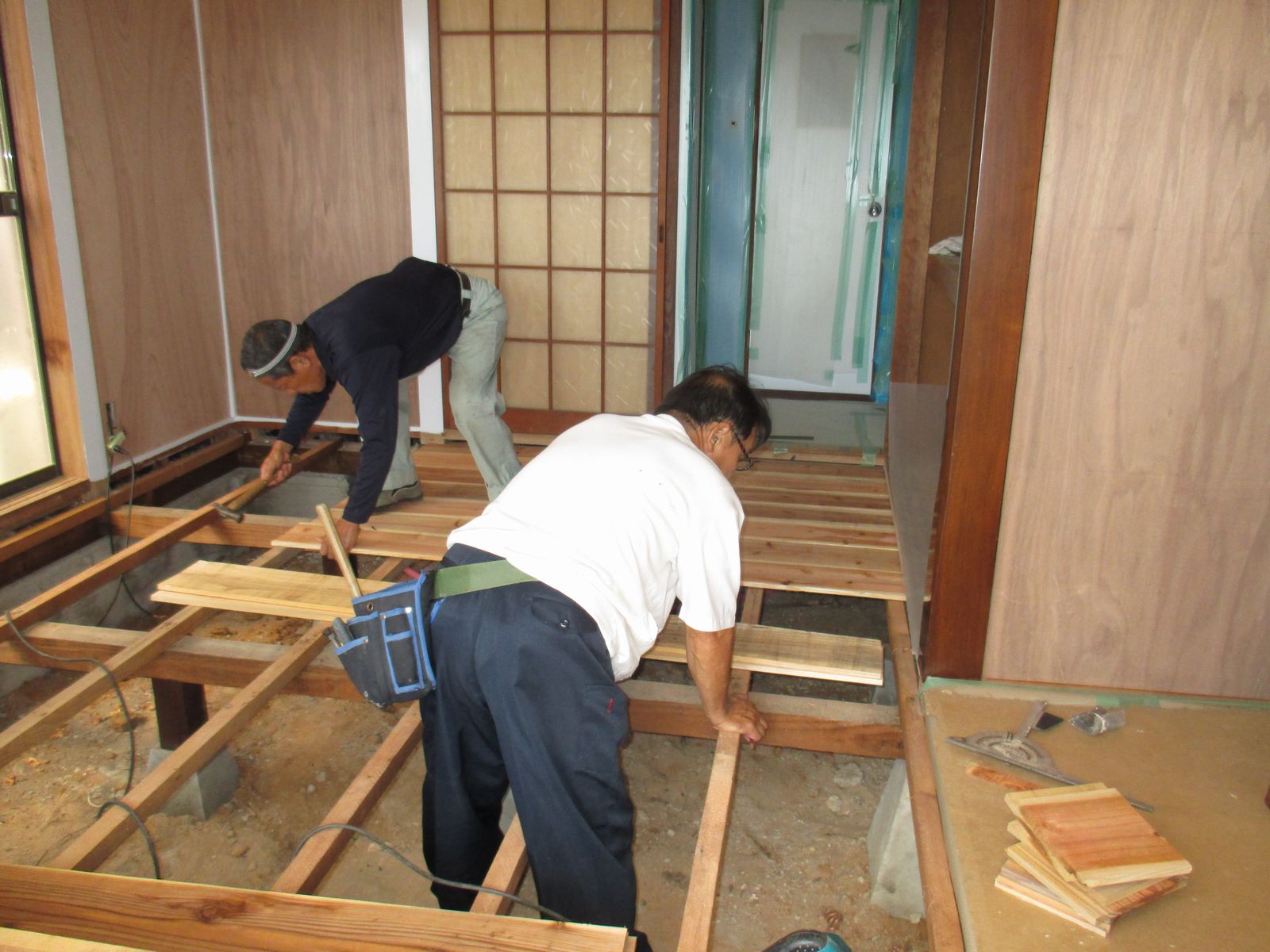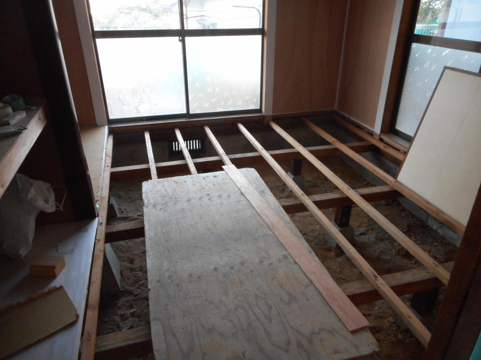 | 畳を撤去しました!! | 新規の座板を施工します!! |