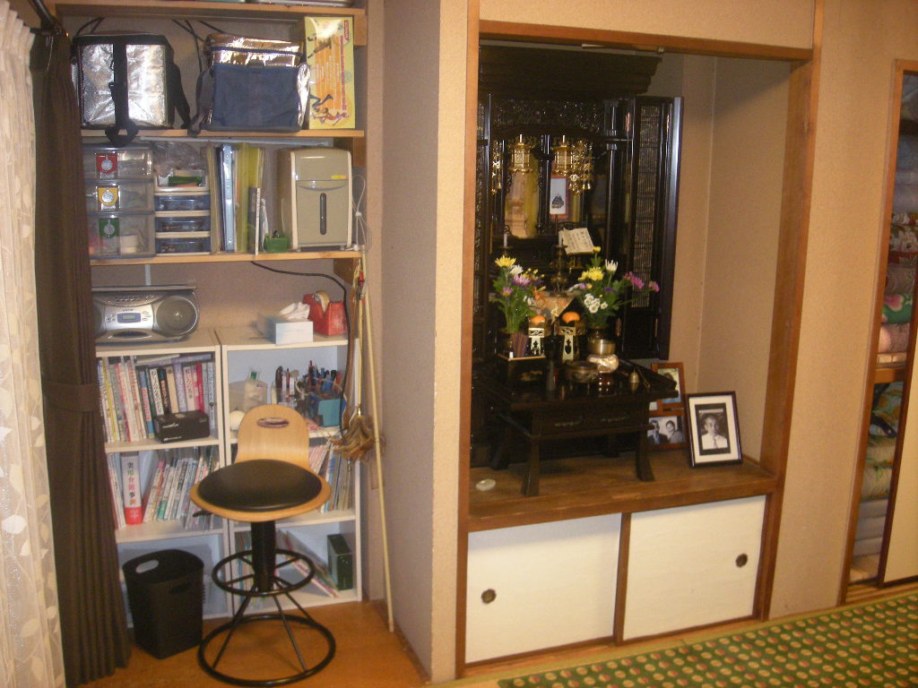 仏壇を別の部屋に移動し、現在の仏壇置き場と床の間を物置スペースに改修しました。