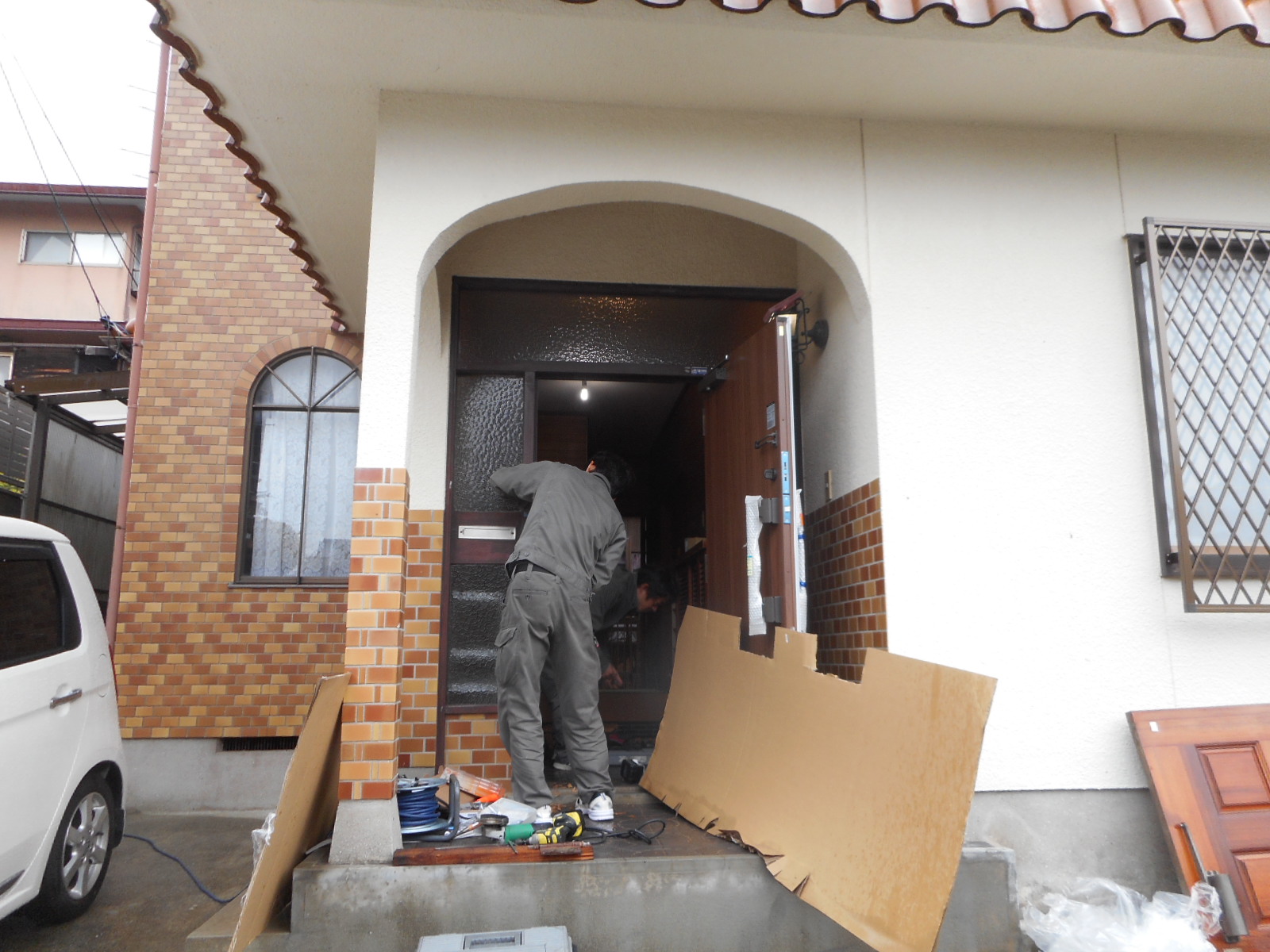 今年の9月に室内の玄関&廊下廻りと和室の改修工事をやらせて頂いた、勝谷新町の方から、今度は玄関ドアの交換の依頼がありました。