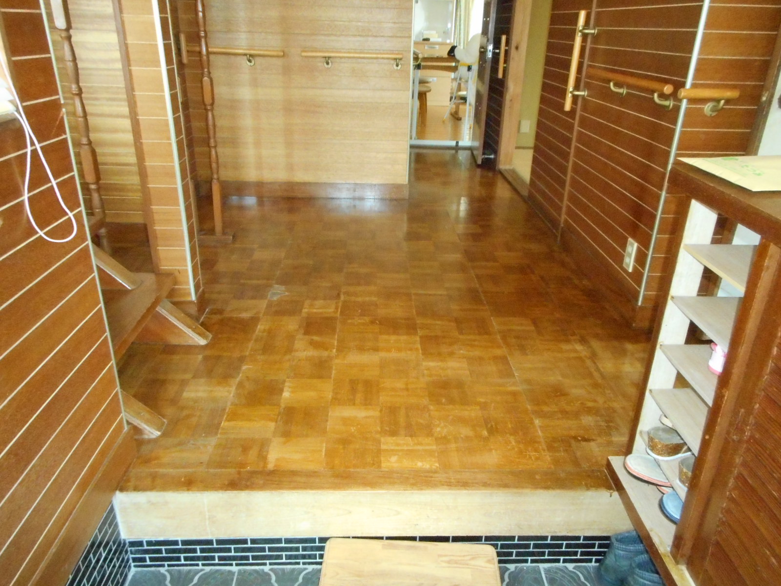 床がブカブカすると言うことで、新規にリフォーム框を取付け後、既存上部より新規のフロア材を施工しました。
