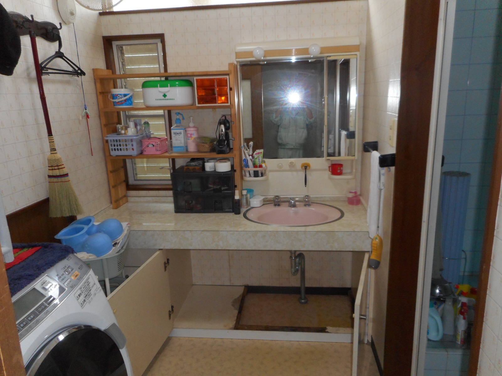 2013年12月に一ノ宮町で仏壇置き場と床の間廻りの改修工事をやらせて頂いた方からの紹介で、前勝谷にお住いの妹さんのお宅の洗面所の改修工事を行いました。