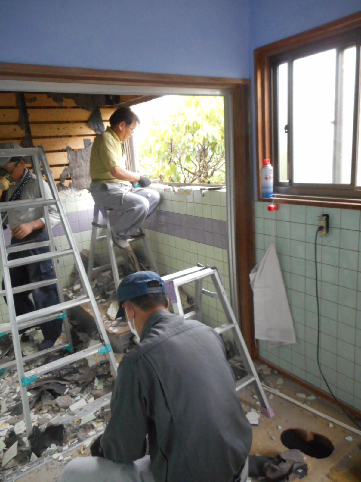 | 浴室と洗面所を、同時に解体します!! | 解体が完了しました!! |