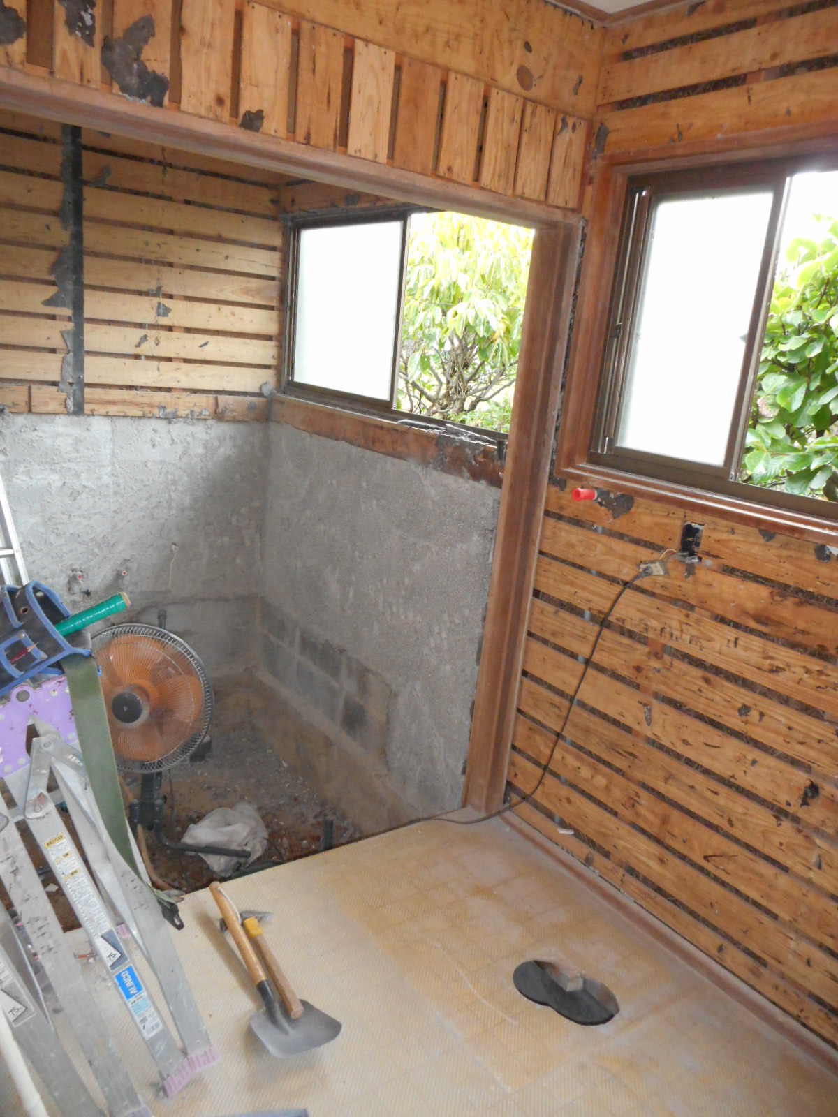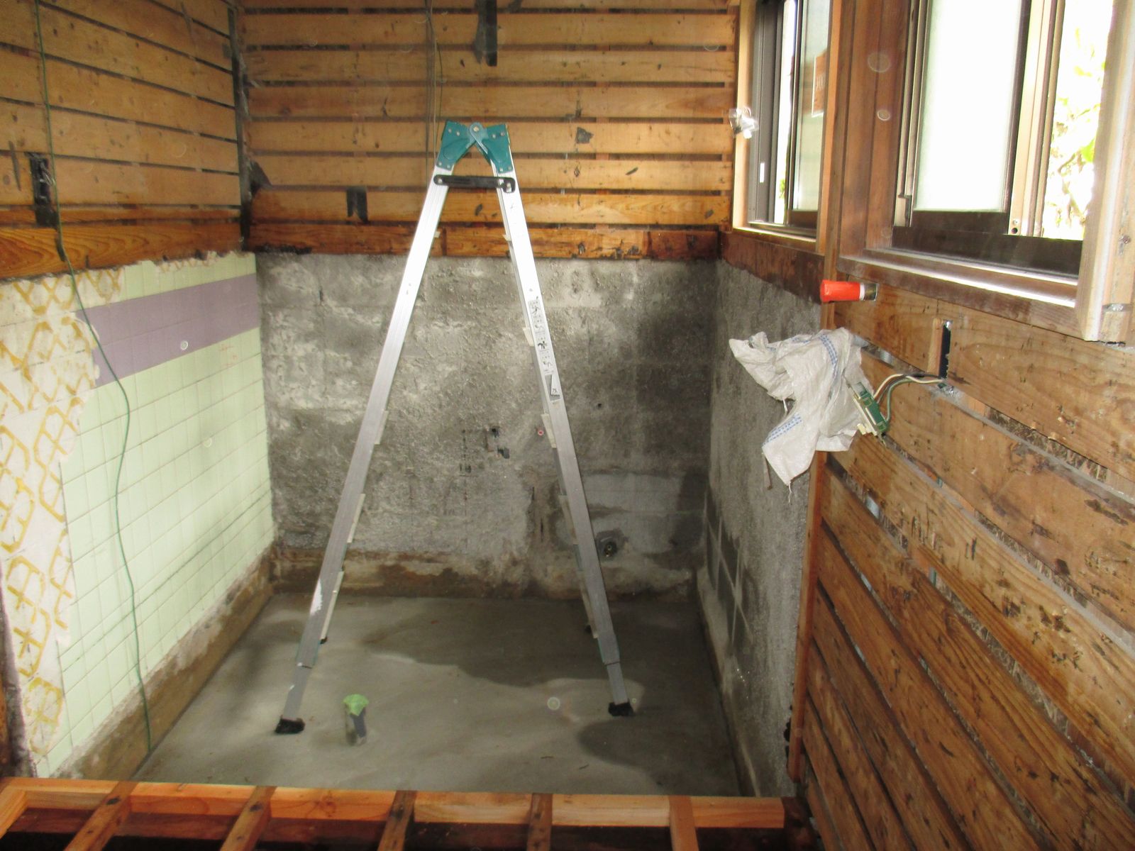 | 浴室の土間に、コンクリートを打ちました!! | 洗面所の床の、下地づくりをします!! |