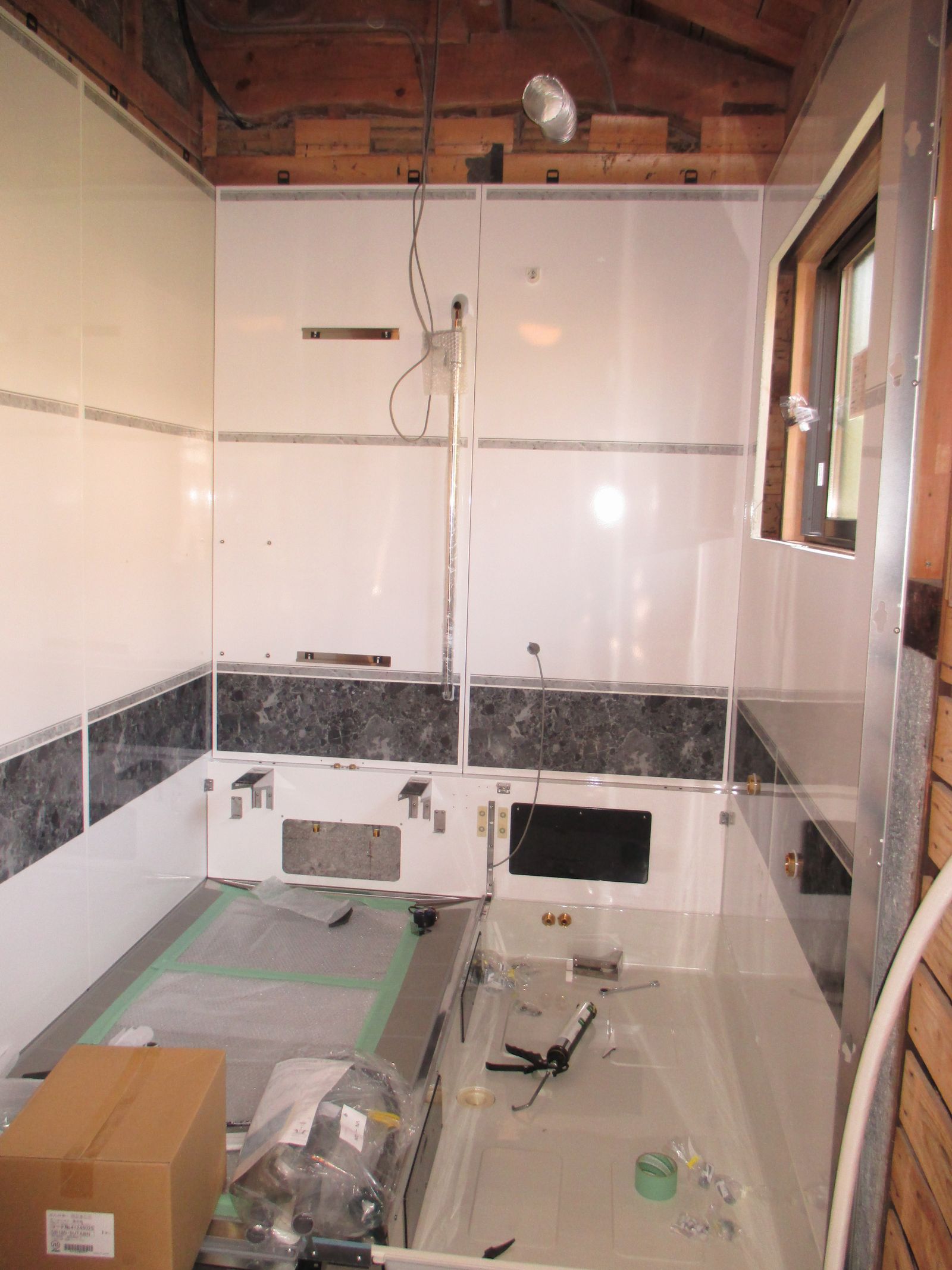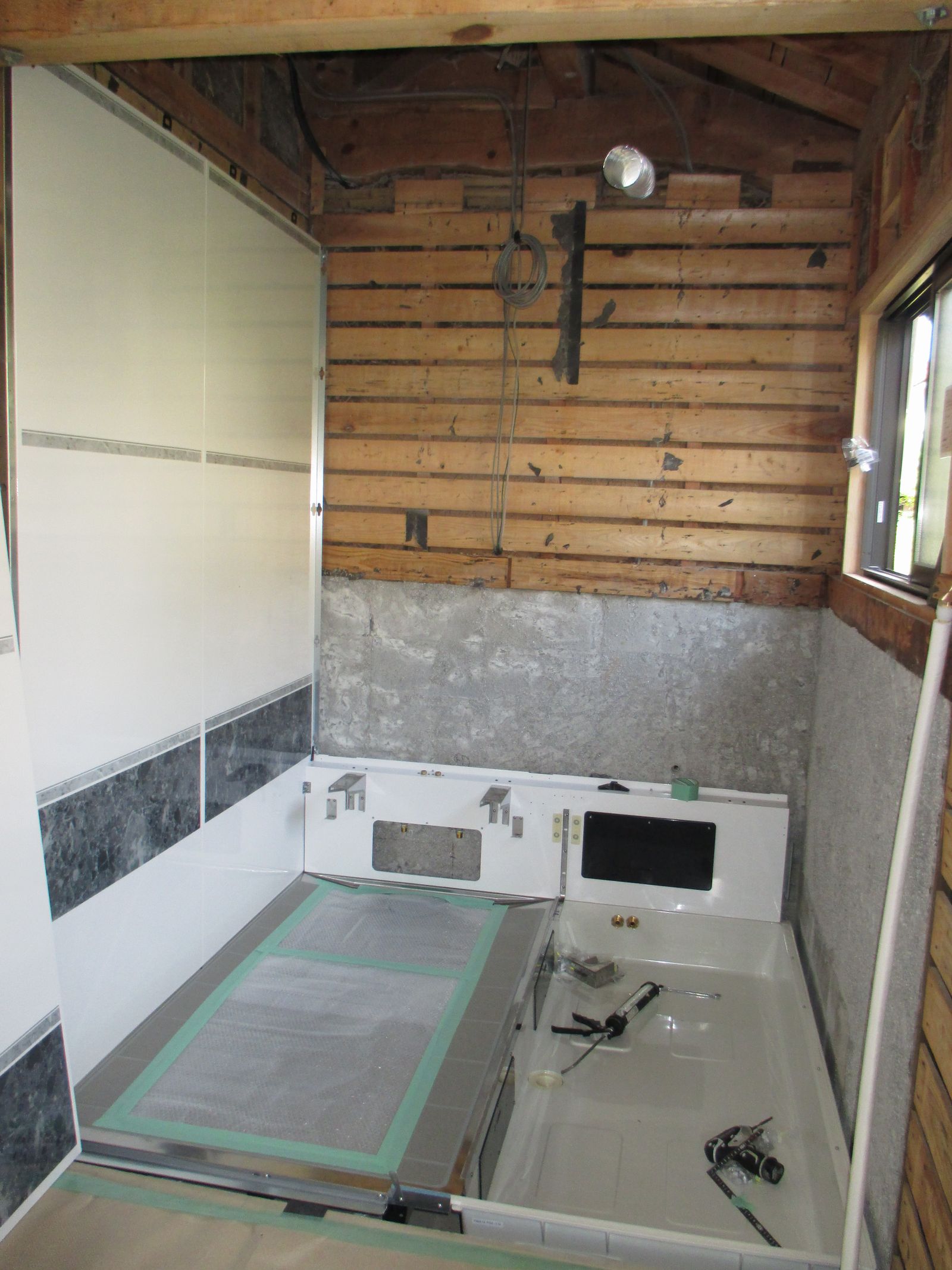 | システムバスを組んで行きます!! (浴槽と洗い場の組付けが完了しました) |