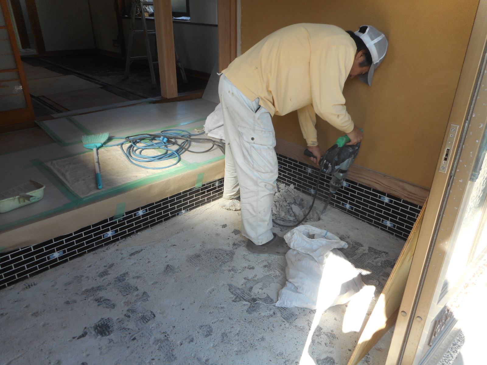 | 既存タイルを解体、撤去します!! | 土間部分の、解体が終わりました!! |