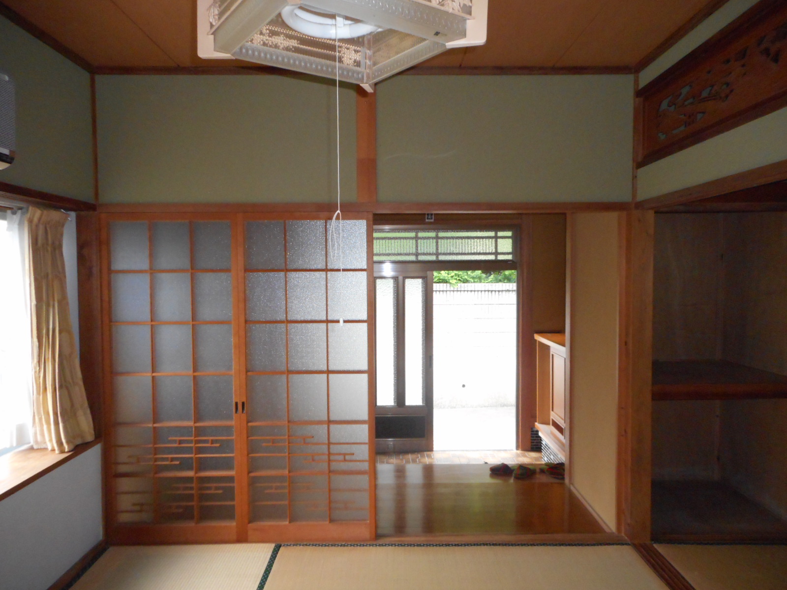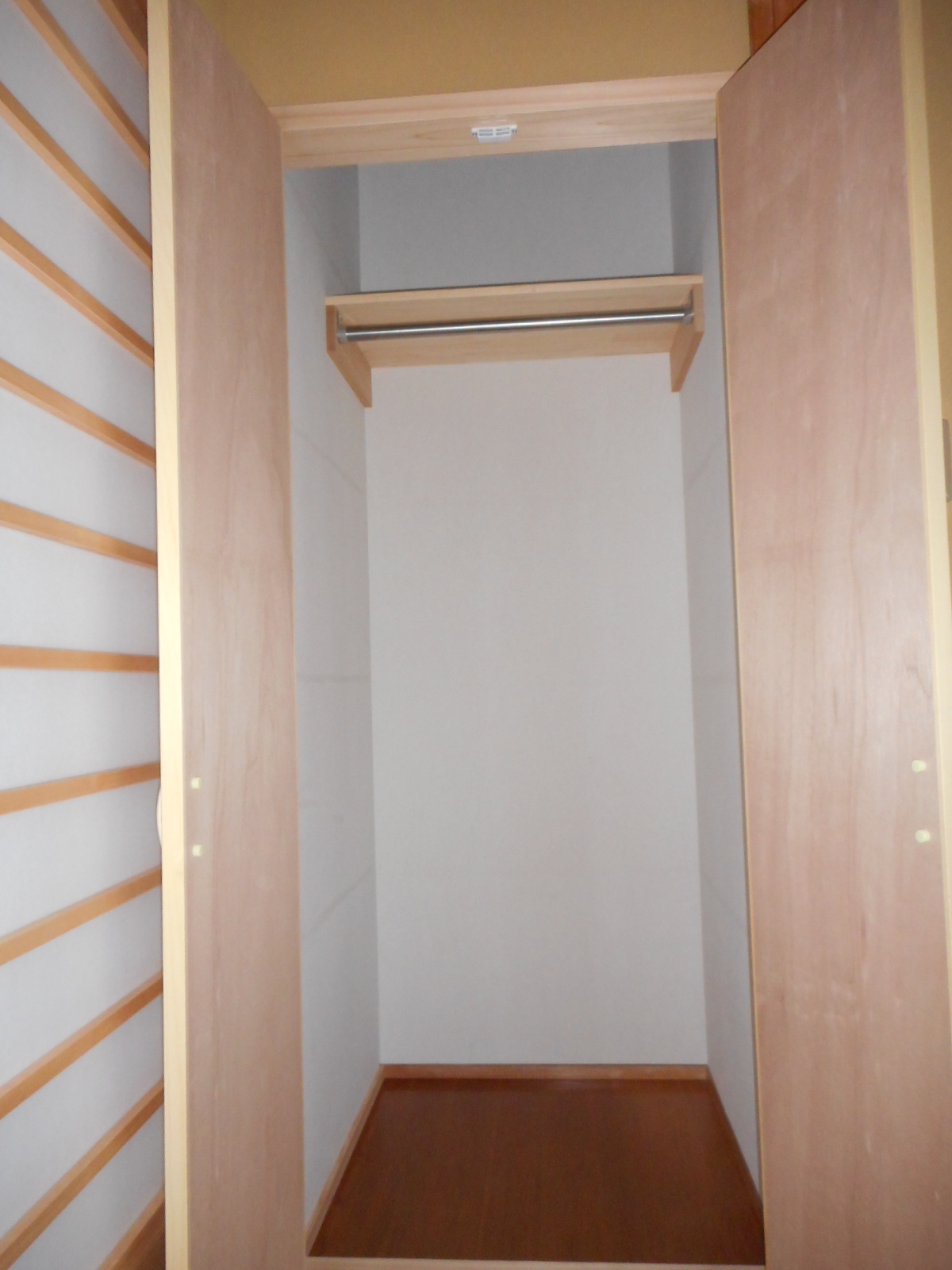| 内装をし、棚板とハンガーパイプを取付け、両開き戸も取付けました!! | *完成です!!(和室側から見る) |
