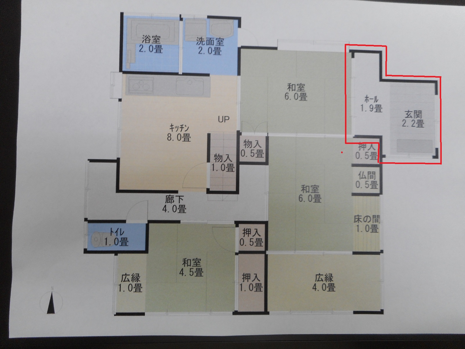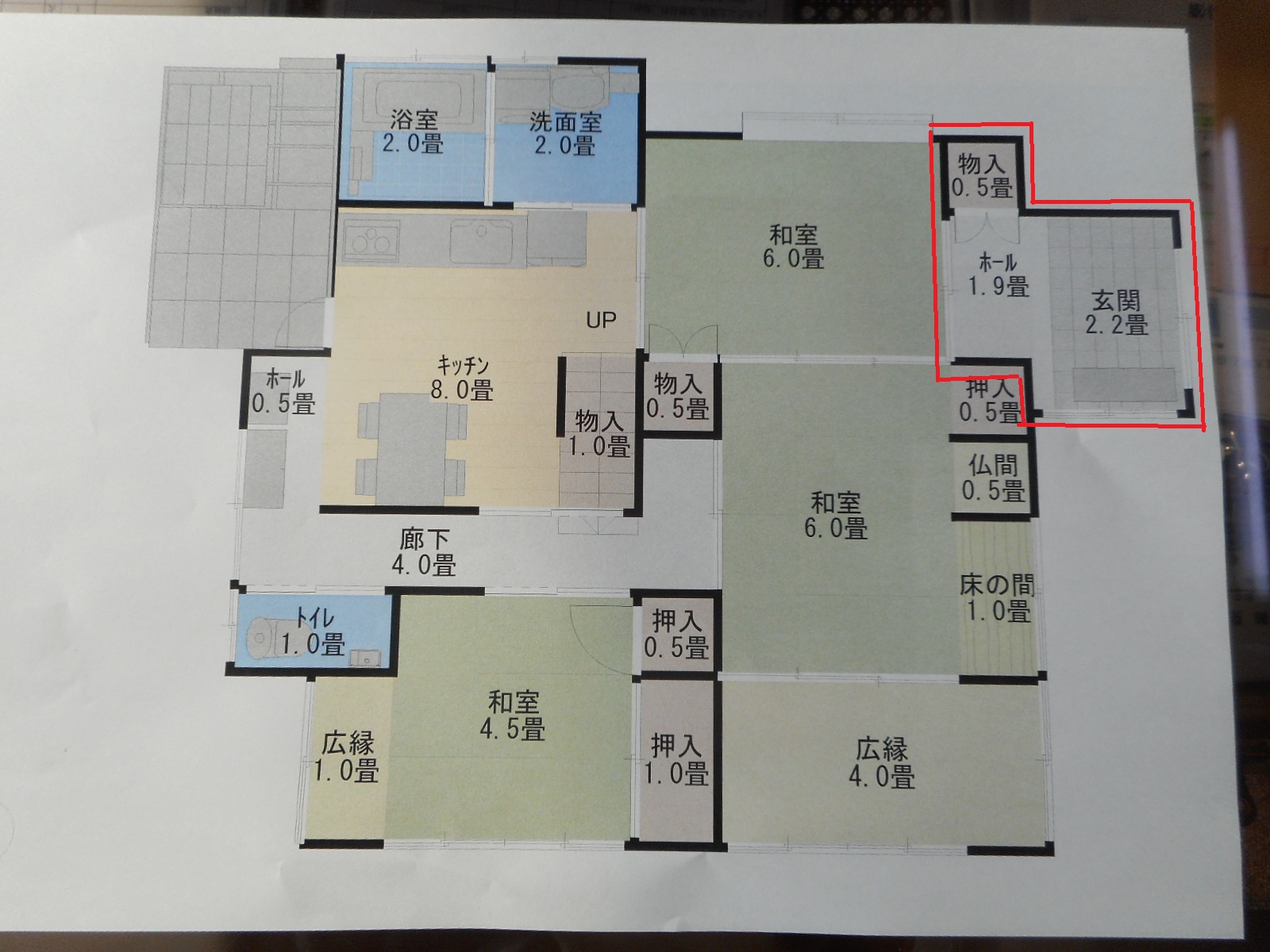 | *ビフォー!! | *アフター!!(ホール部分の奥にクロゼットを新規に造り玄関のタイルを張替えます) |
