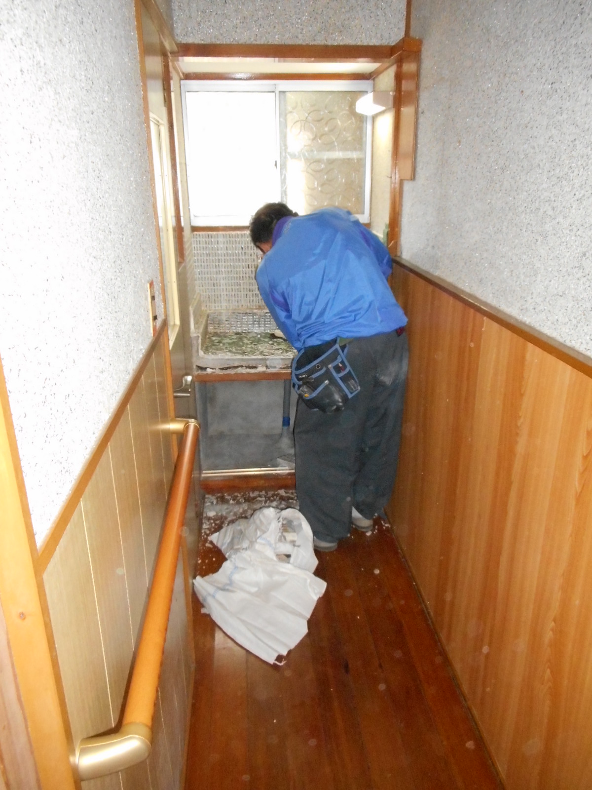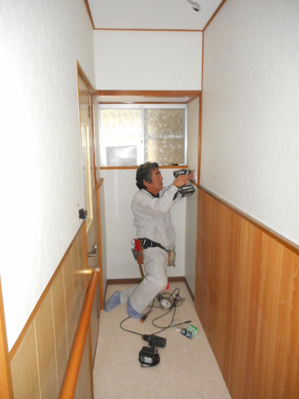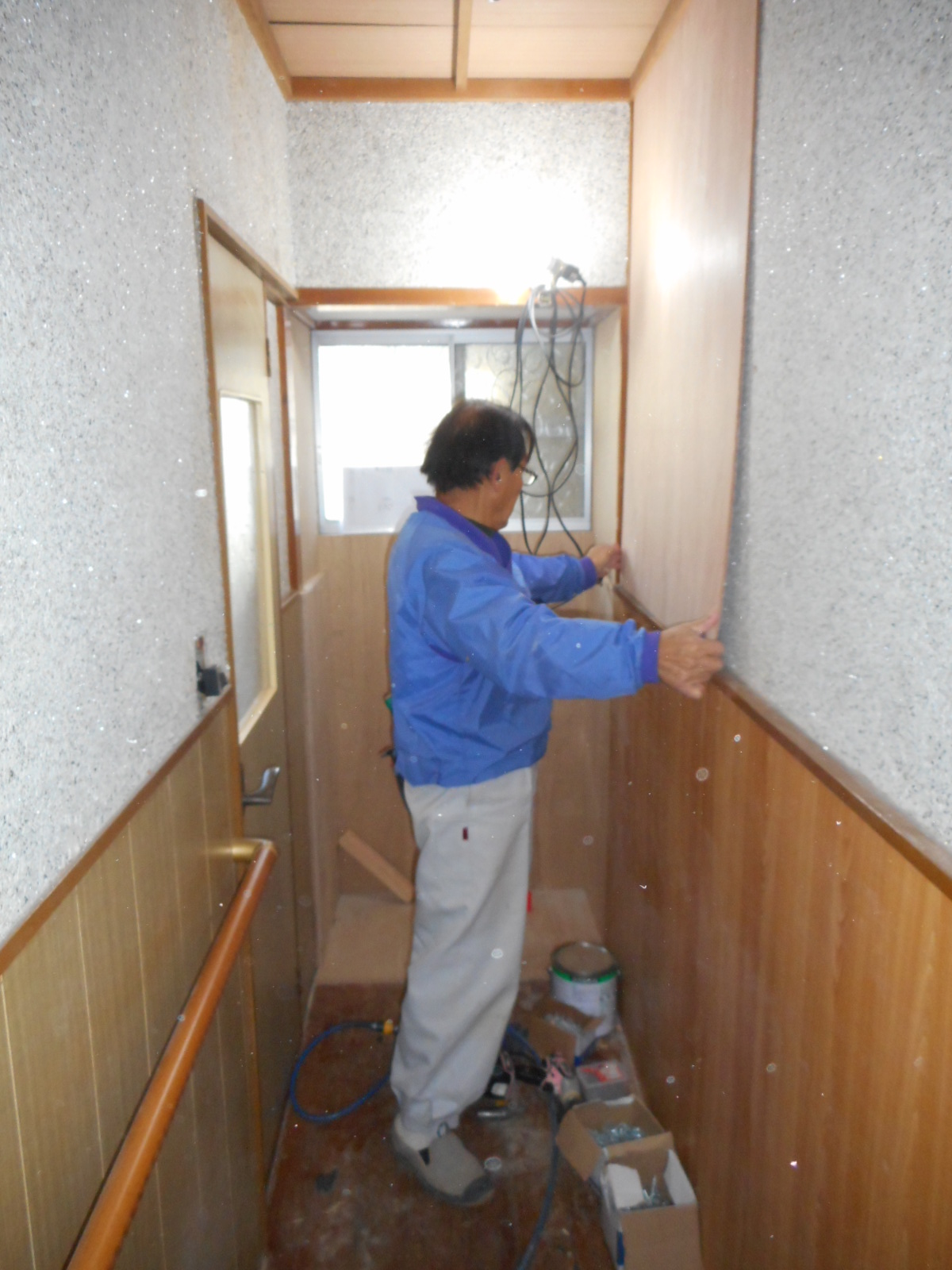 先週は築35年の中古住宅を購入した方からの依頼で、川中本町で洗面所と玄関から廊下廻りの改修工事を行いました。