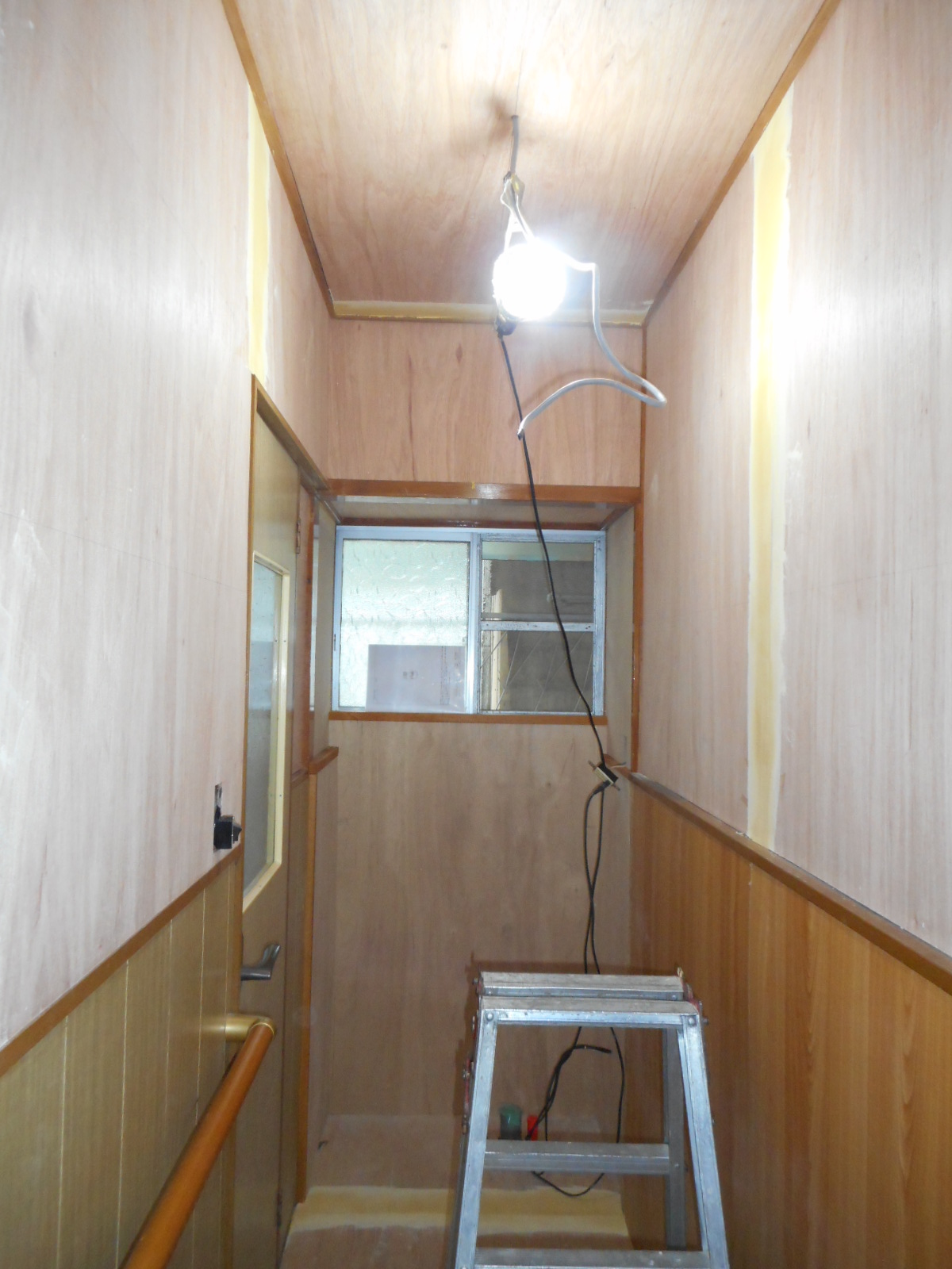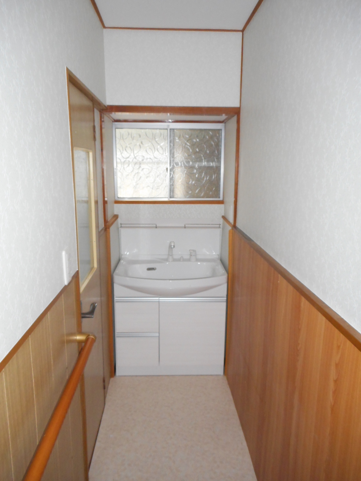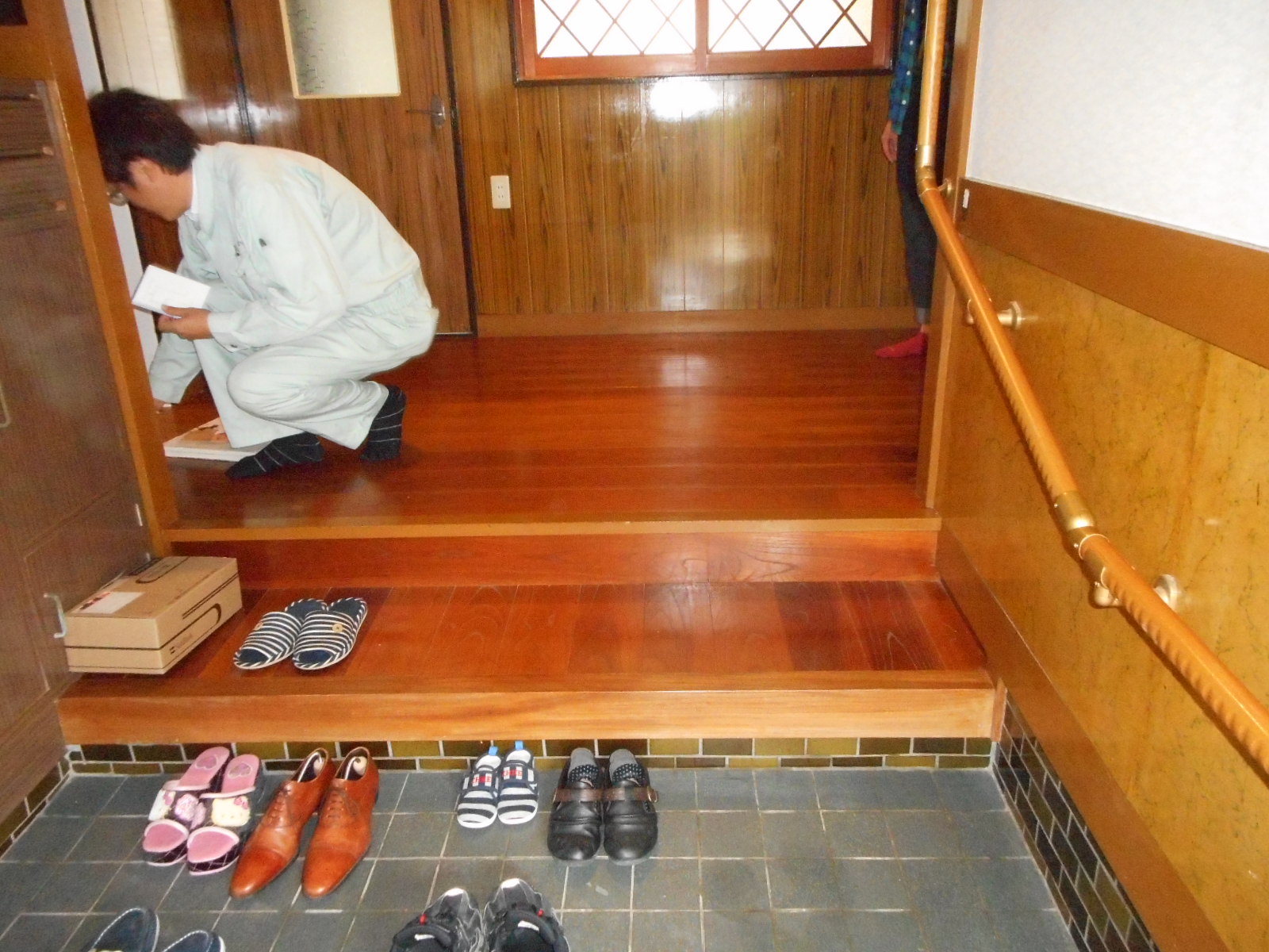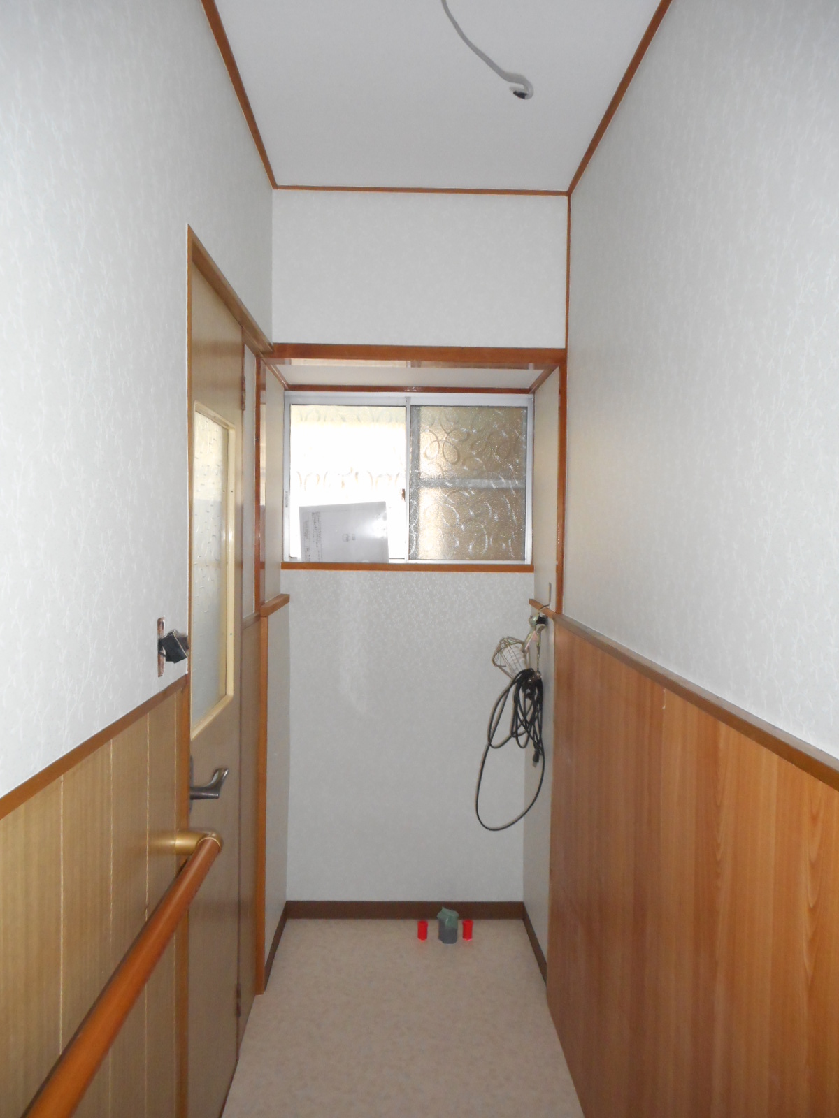 先週は築35年の中古住宅を購入した方からの依頼で、川中本町で洗面所と玄関から廊下廻りの改修工事を行いました。
