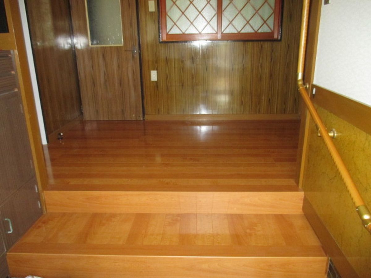*工事後!!(玄関にリフォーム框を2本施工し、式台も含め新規のフロア材を施工しました)