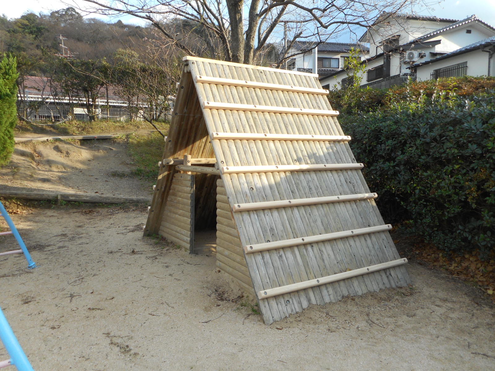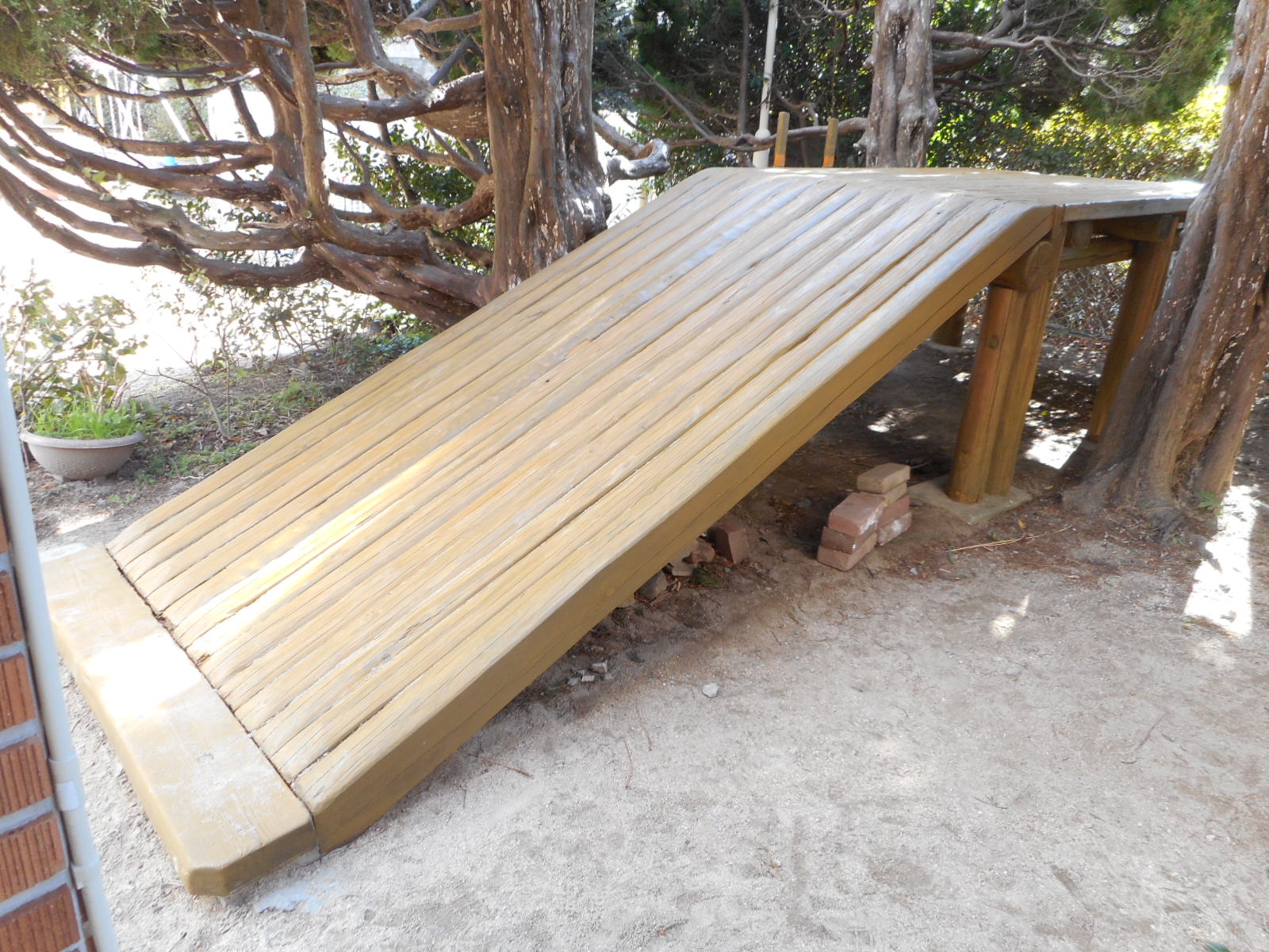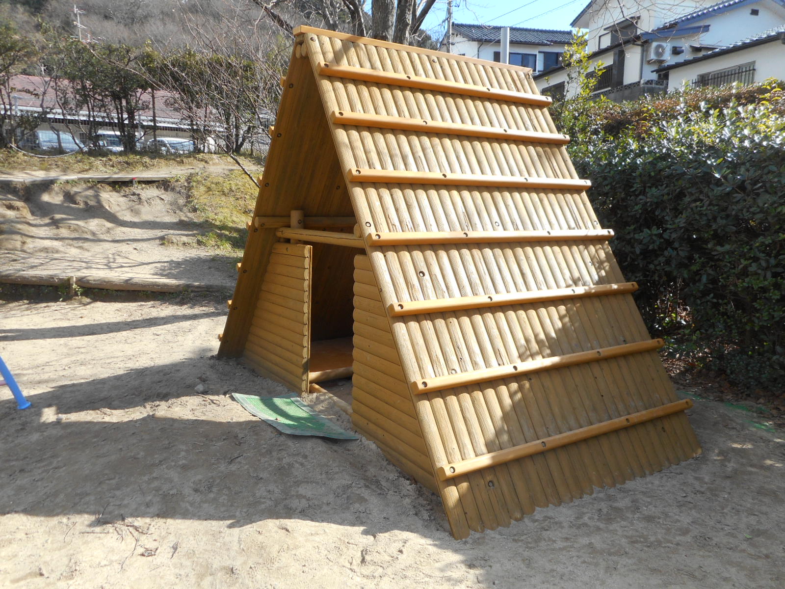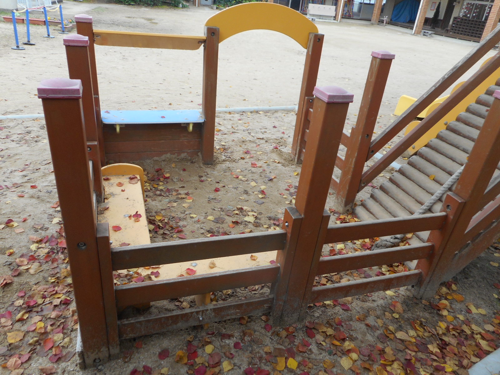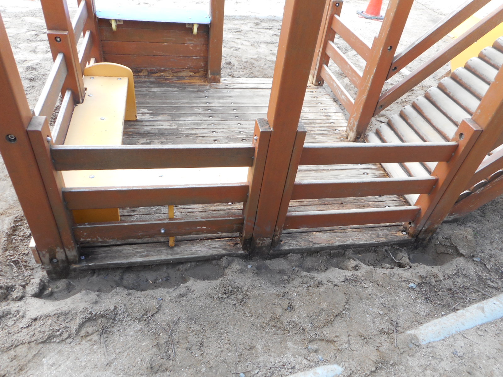 | この遊具は、木部に状態の悪い部分があります!! ⇒ | 状態の悪い部分を交換しました!!(白木の部分) |