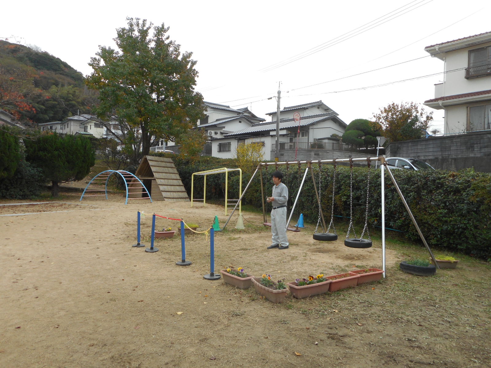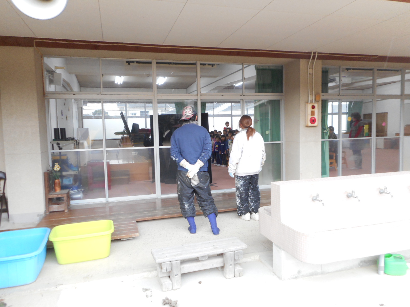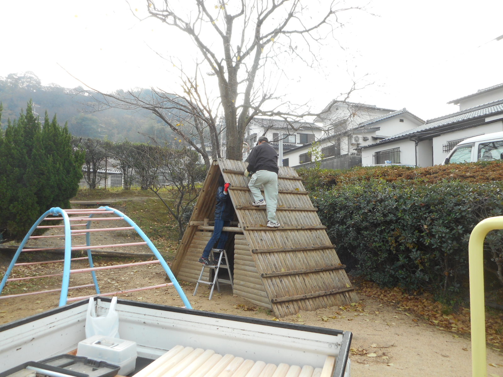 *園児たちが安心して遊べる様に、しっちかりと補修をし、次は塗装作業をします。