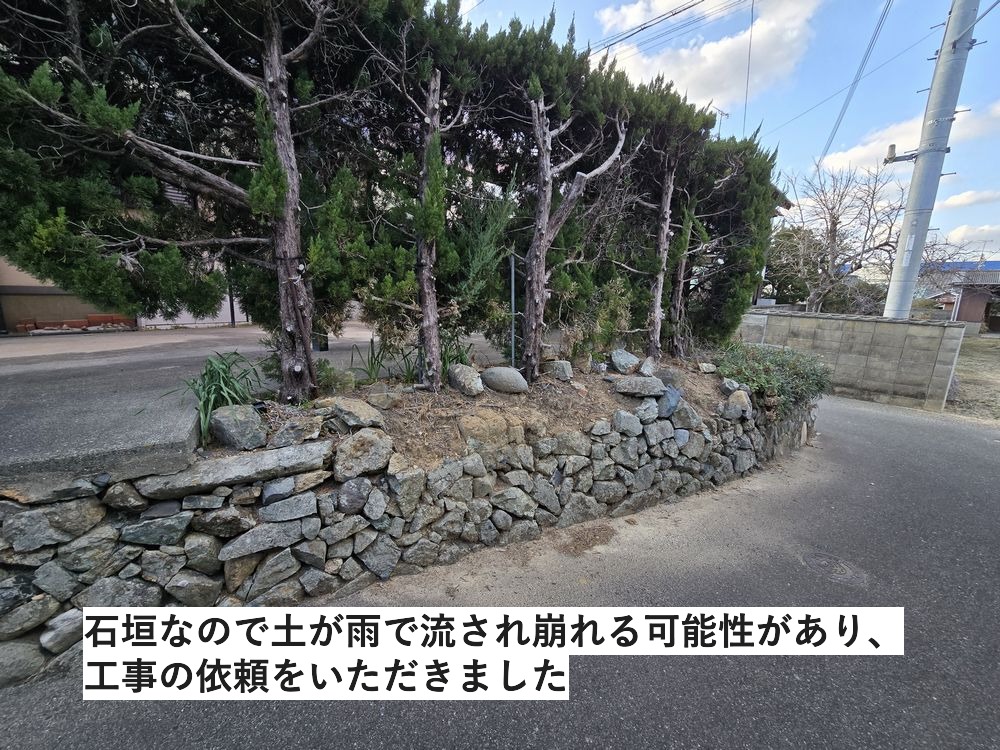 伊倉本町某邸で行った石垣補修工事を紹介します。