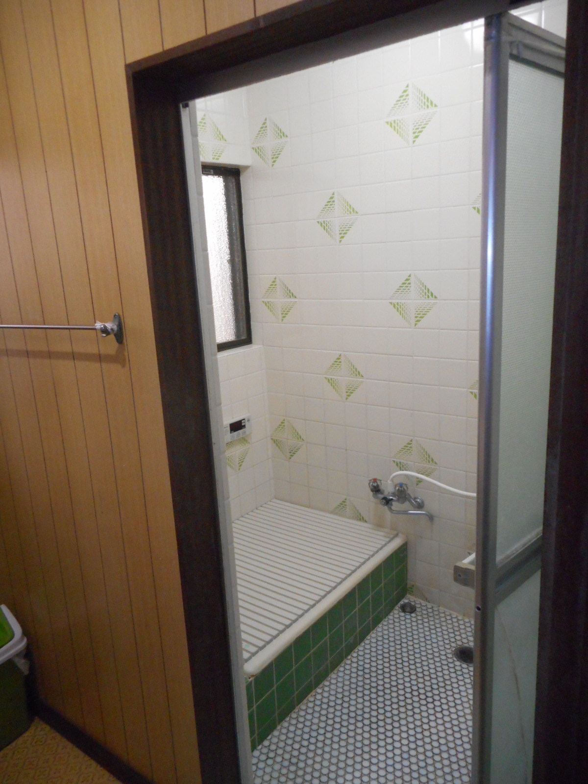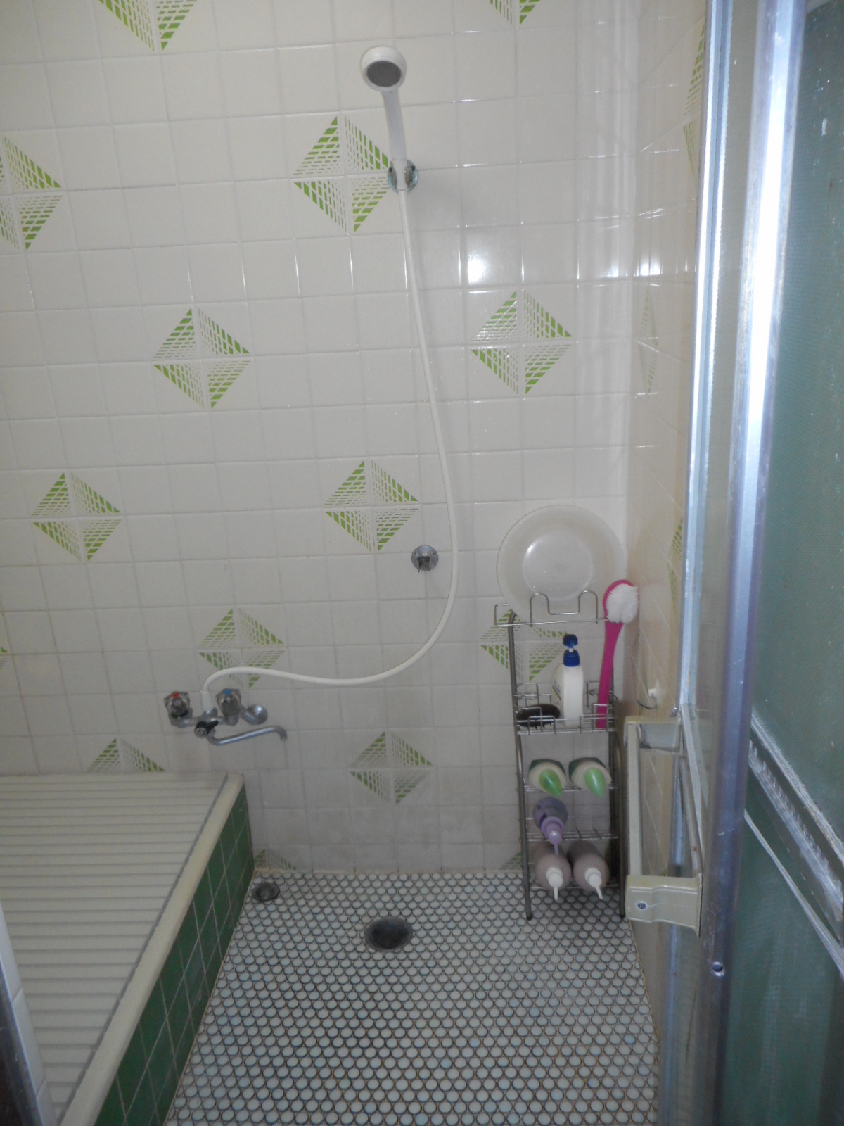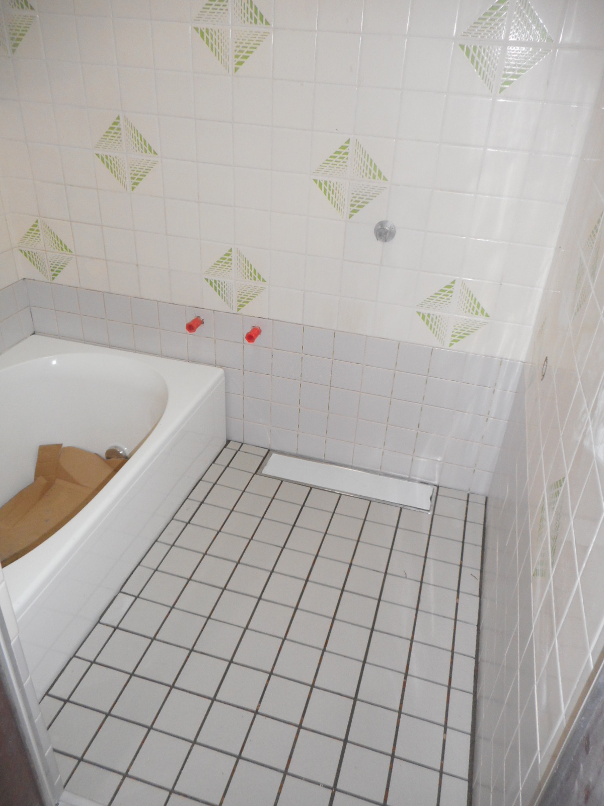 今回の浴室の改修は、古くなった浴槽の交換と、それに合わせて洗い場のタイルの張替え、シャワー水栓の交換、動きの悪い入り口折れ戸と換気扇の交換を行います。