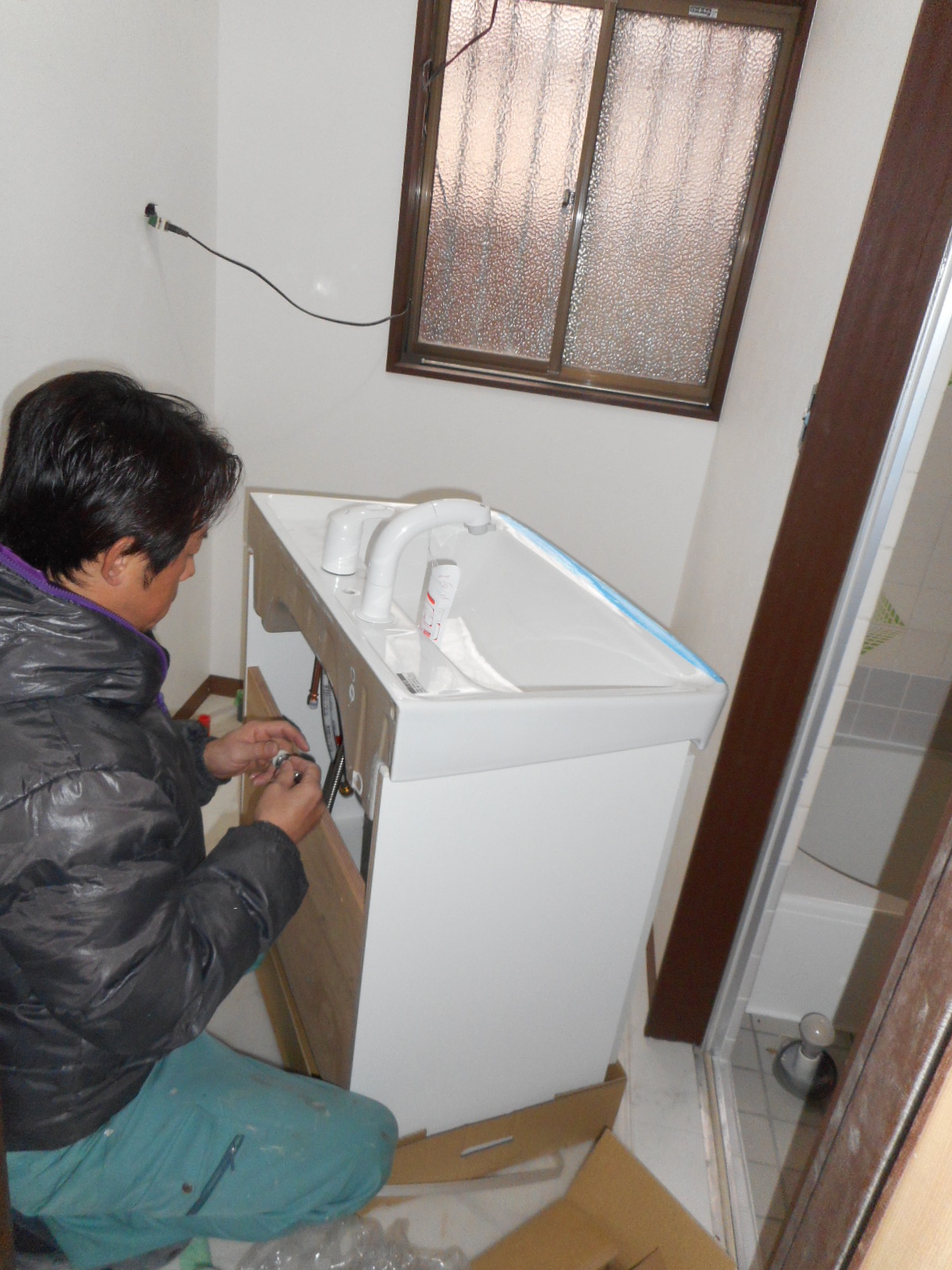 | 新規の化粧台を、組み付ける準備をします!! | 新規の化粧台を、組付けます!! |