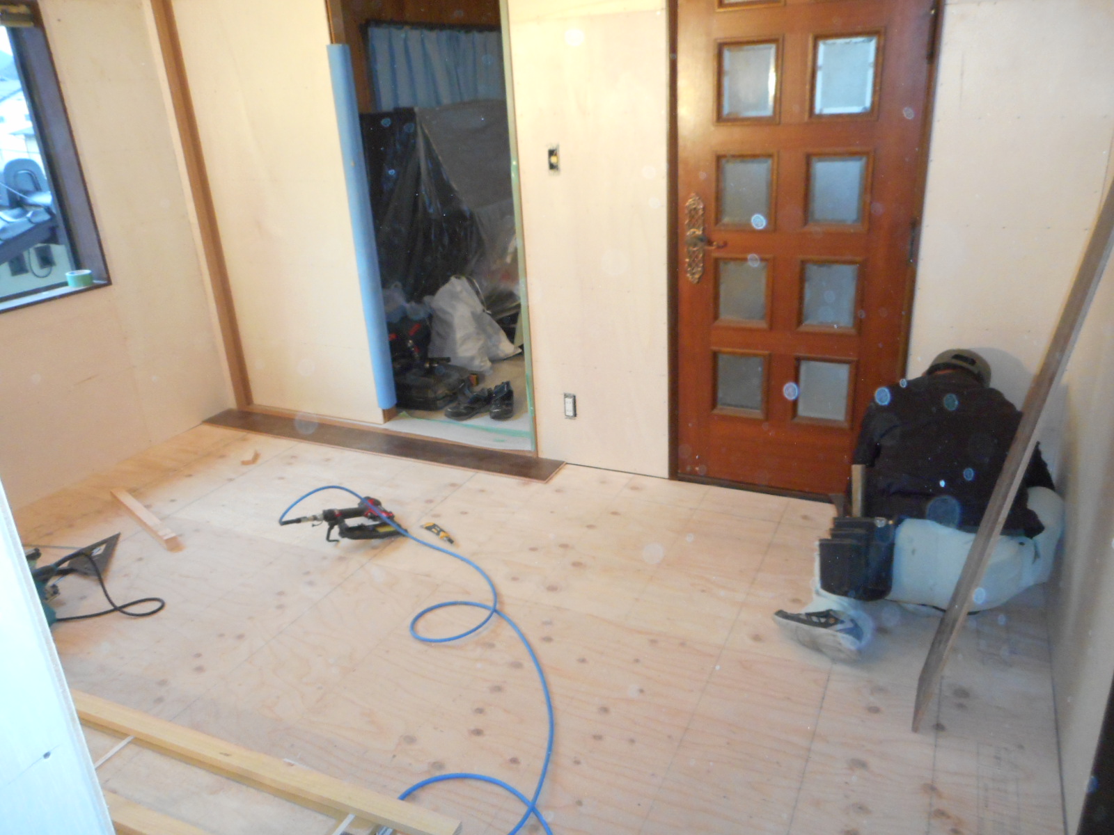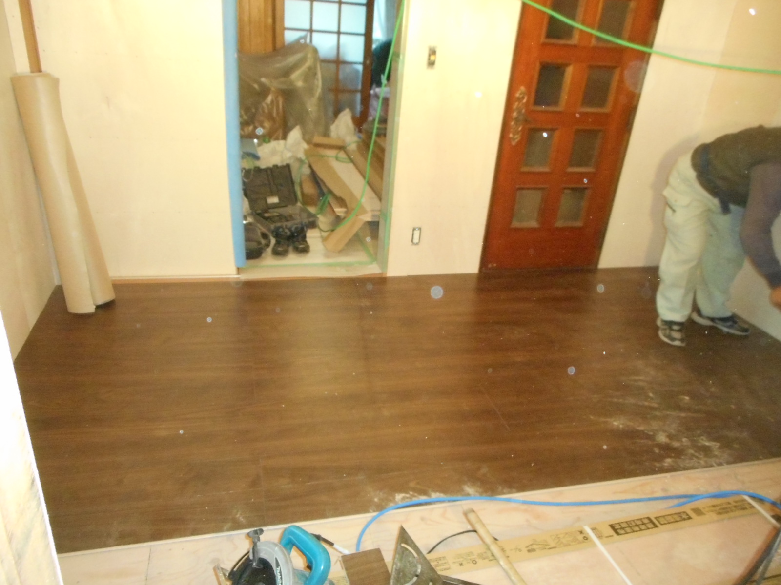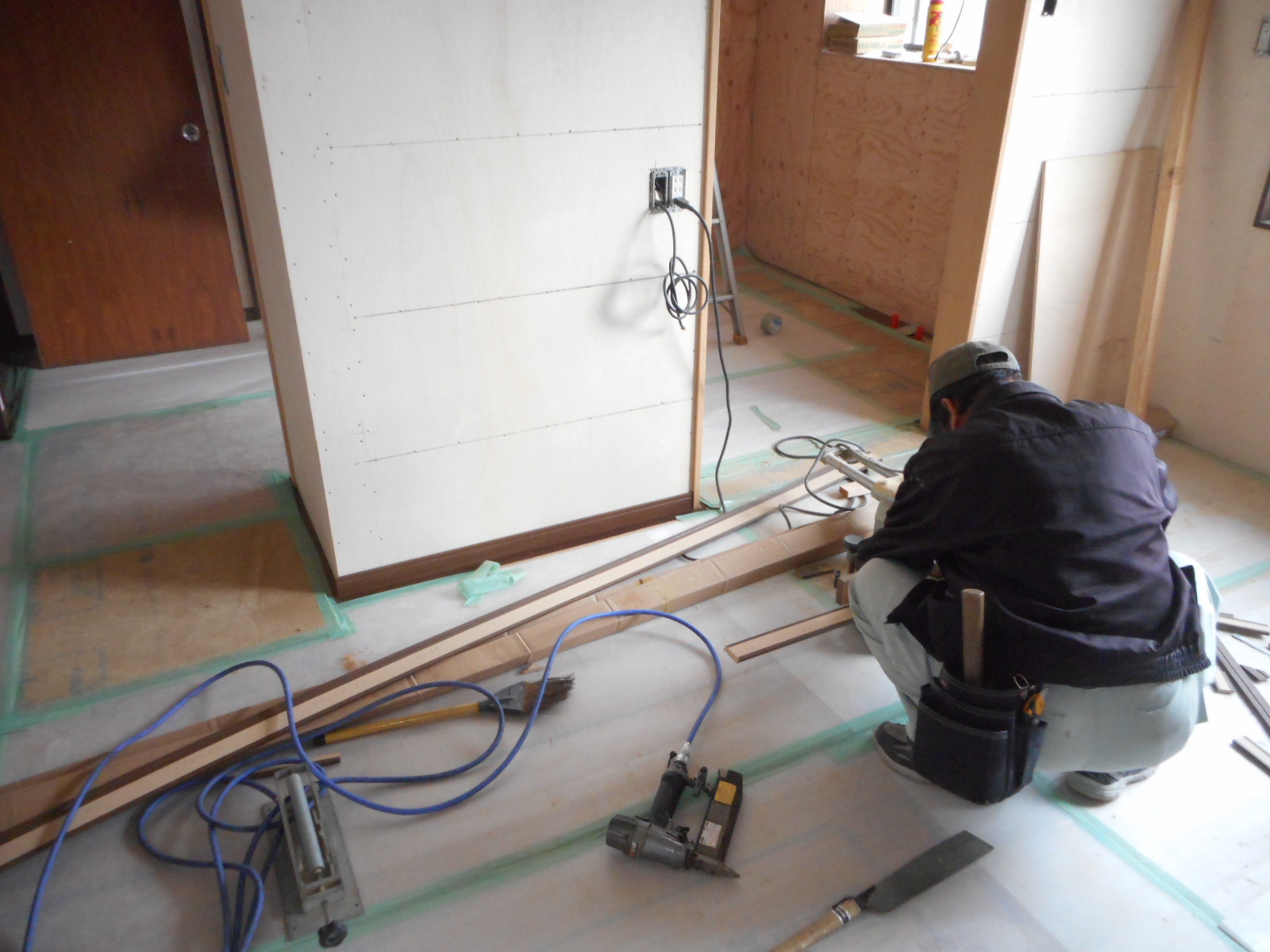 | 床にフロア材を、施工します!! | 順次フロア材を、施工して行きます!! |