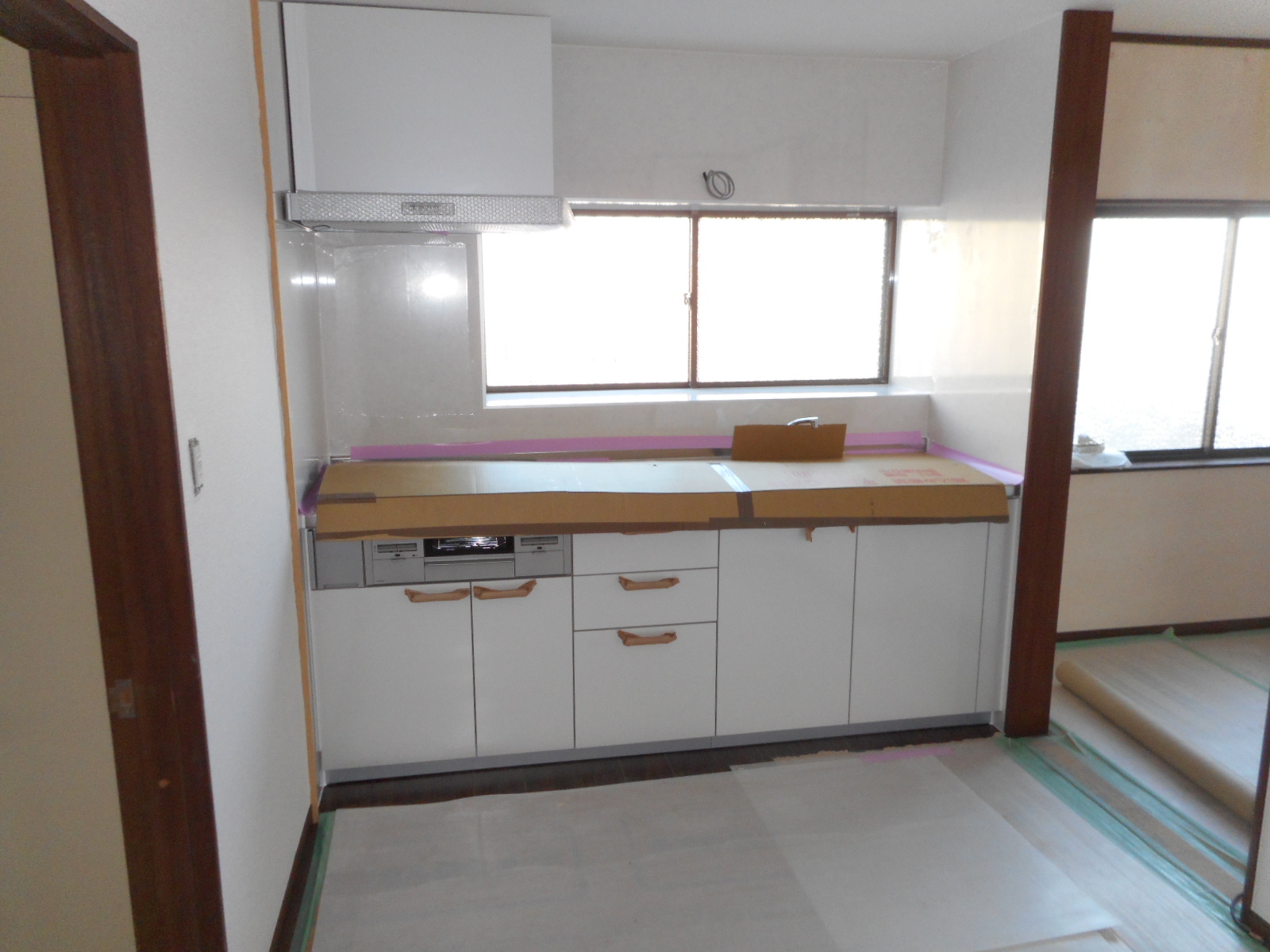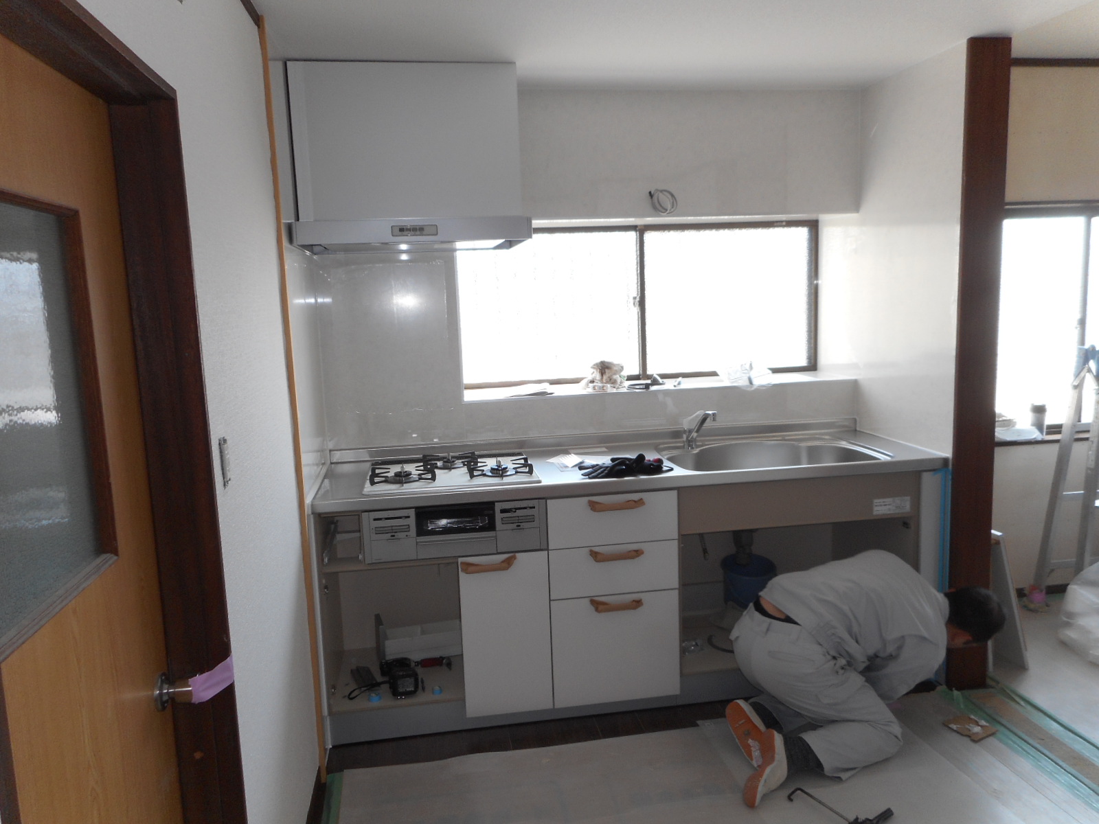 *システムキッチン組立て。