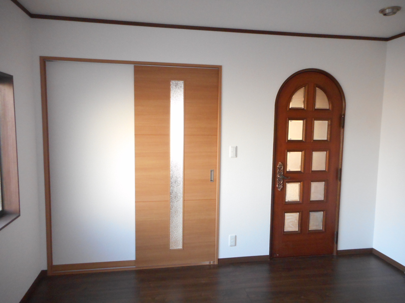| 新規建具の、枠を取付けました!! | 新規の建具を、仮に建付けて見ました!! (バッチリOKの様です) |