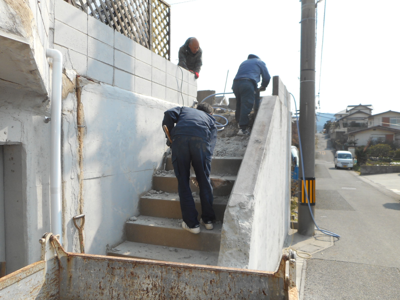 | 階段部分を、解体します!! | 大変な作業です!! |