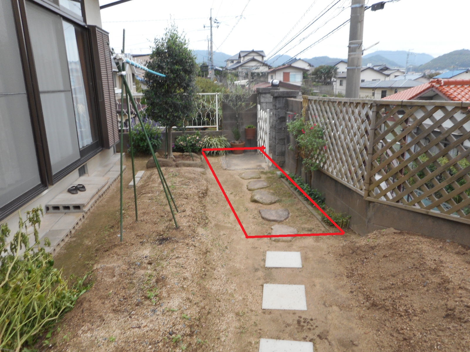 上の敷地の□部分まで、 折り返しの新たな階段を造ります!! |
