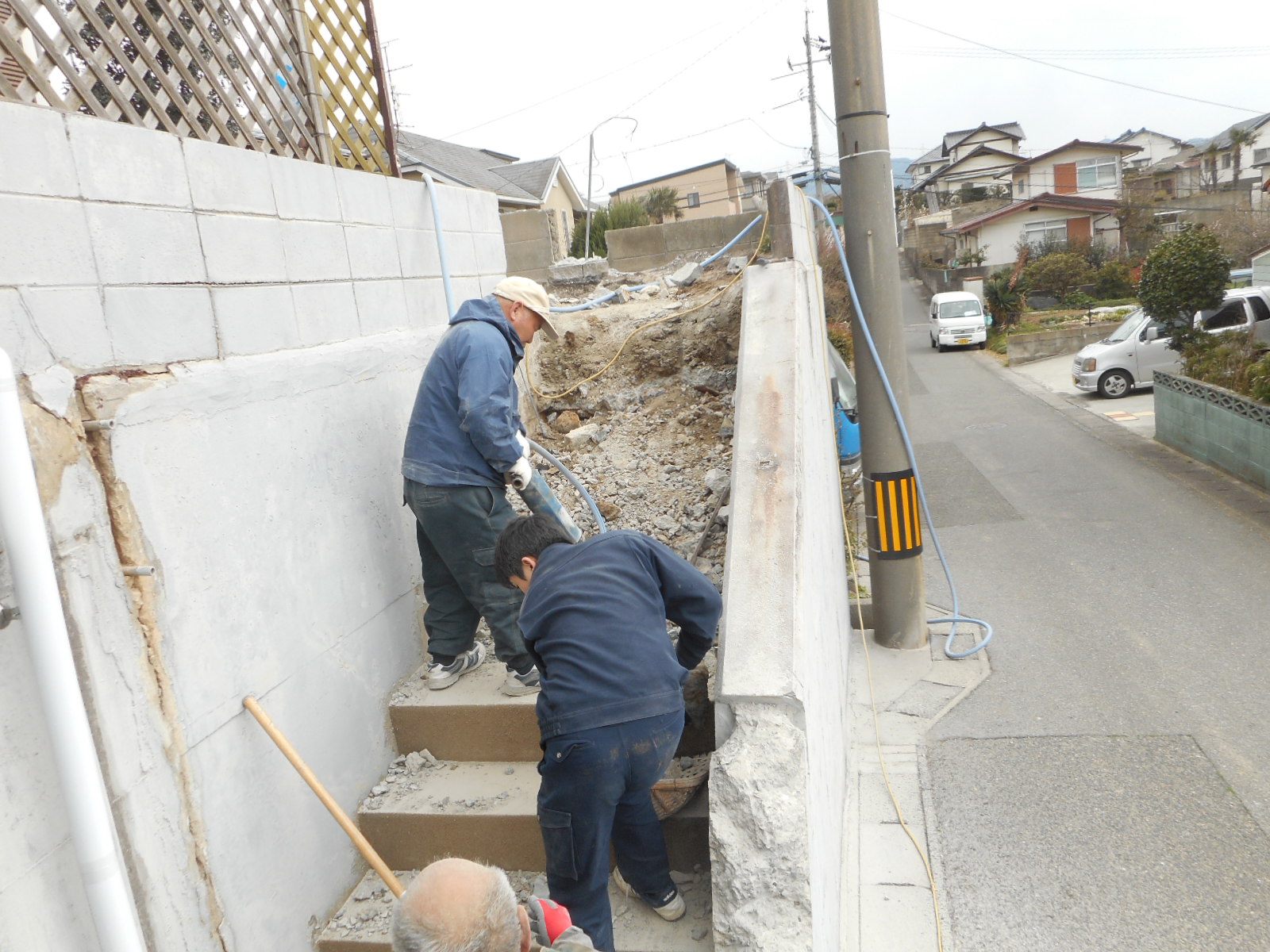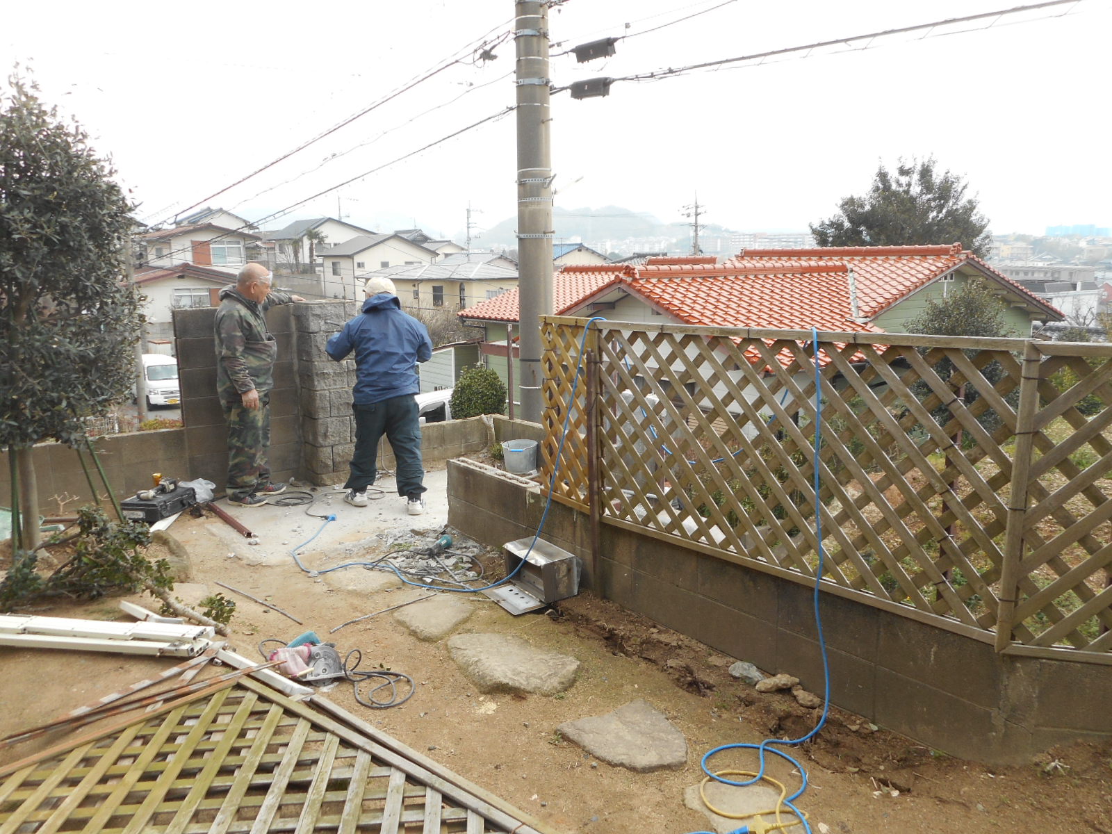 安全の上がり降りするために手摺りを取り付けたりと、階段、門廻りを大改修します。