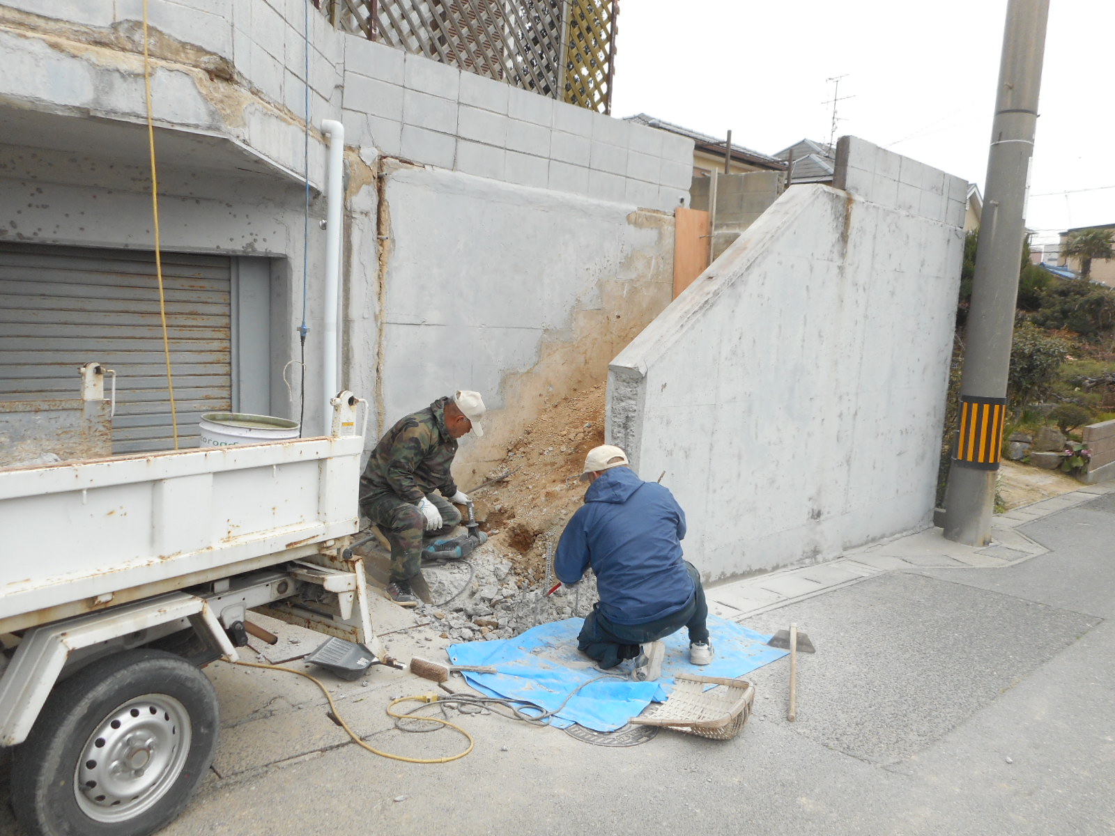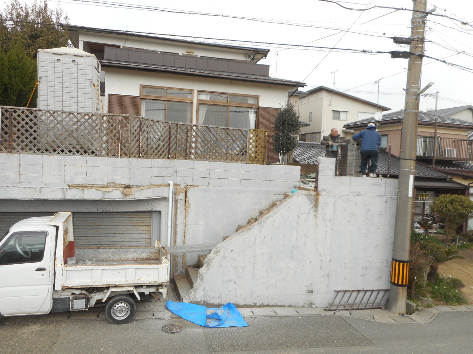 | 最初に、上の門廻りの解体をします!! | 門柱を、解体しています!! |
