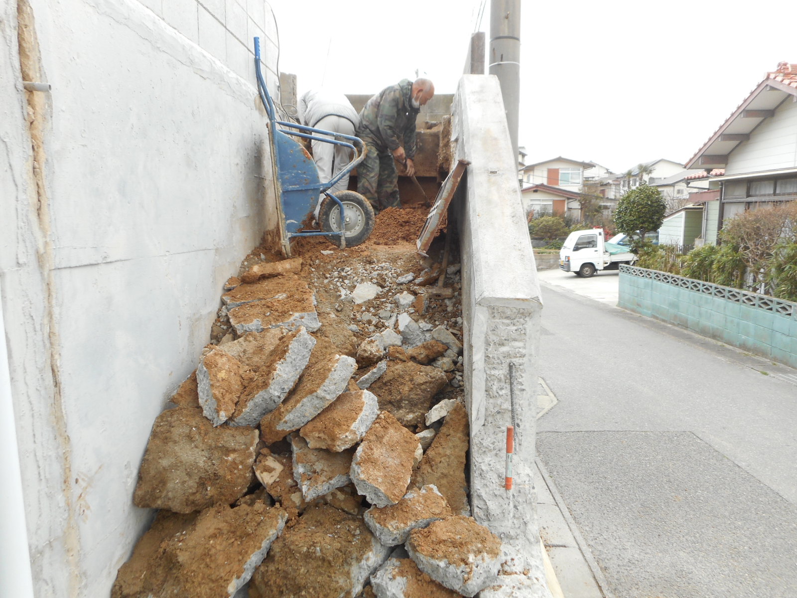| 測量後、階段部分をさらに掘り下げます!! (大量のコンクリートガラが出て来ました) |