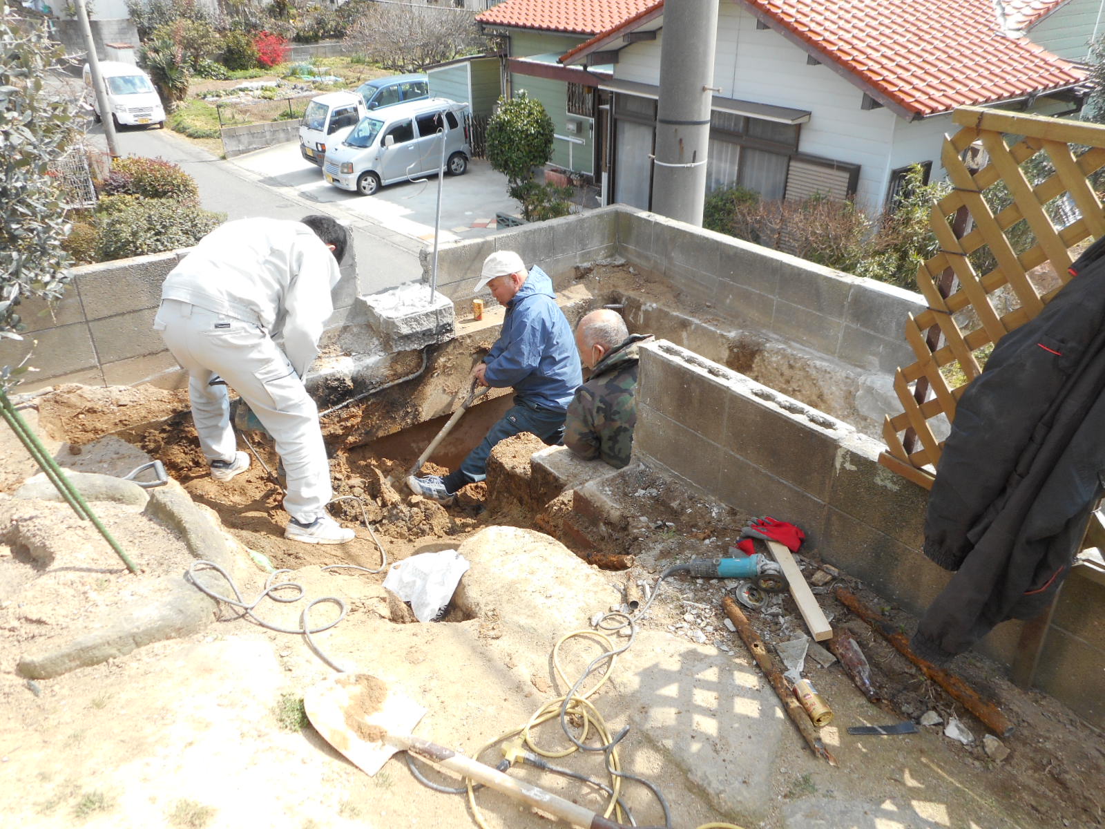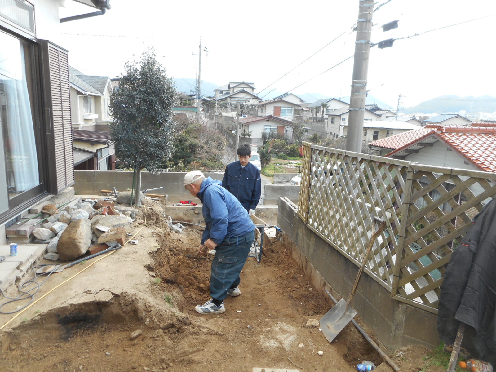 ※前回までに室内の改修工事がほぼ終わり、いよいよ最後の大工事の外構工事に入りました。