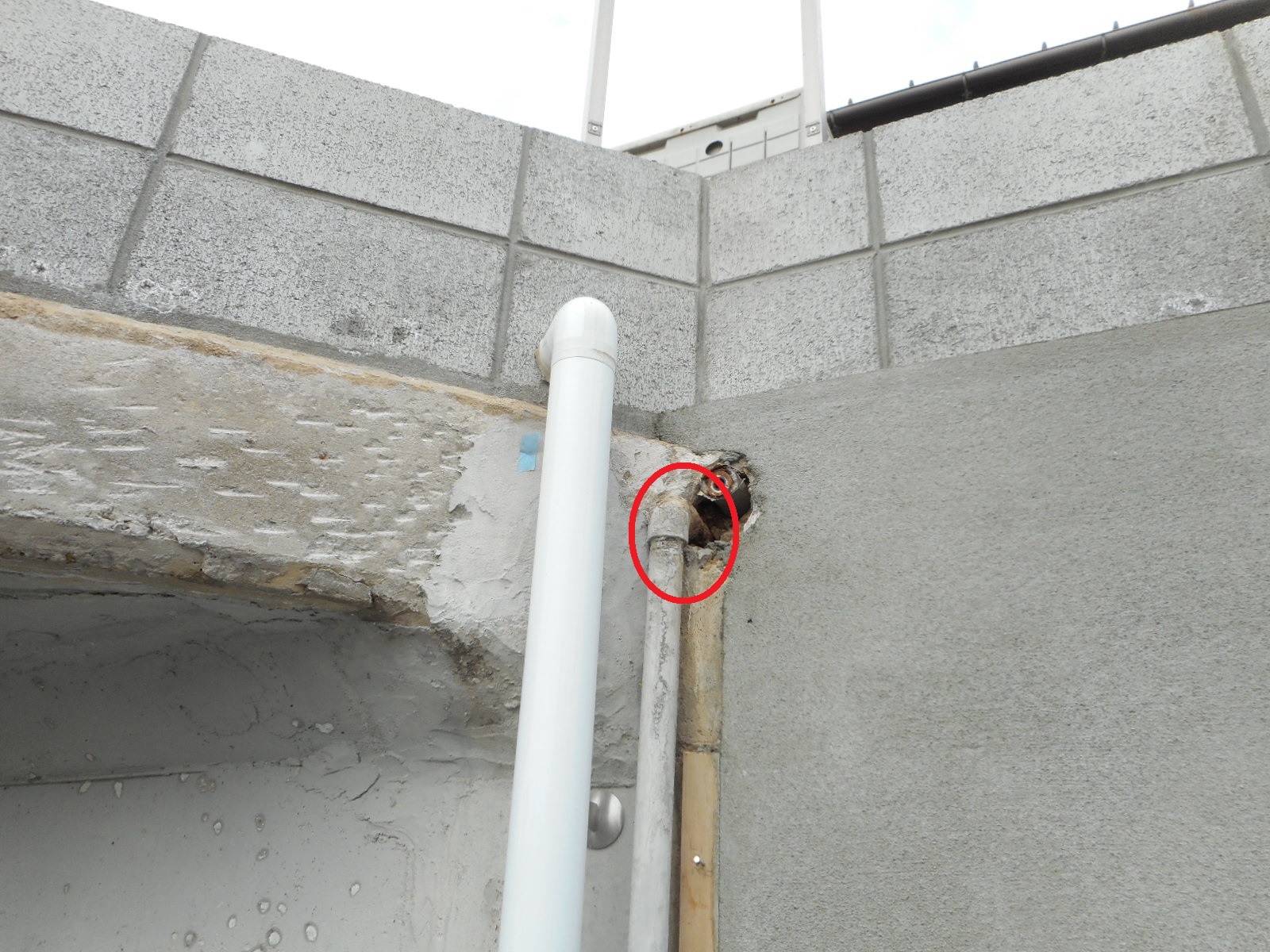 | □部分のガス管の、上の○部分腐食しています!! | ○部分が腐食して、状態が良くありません!! |