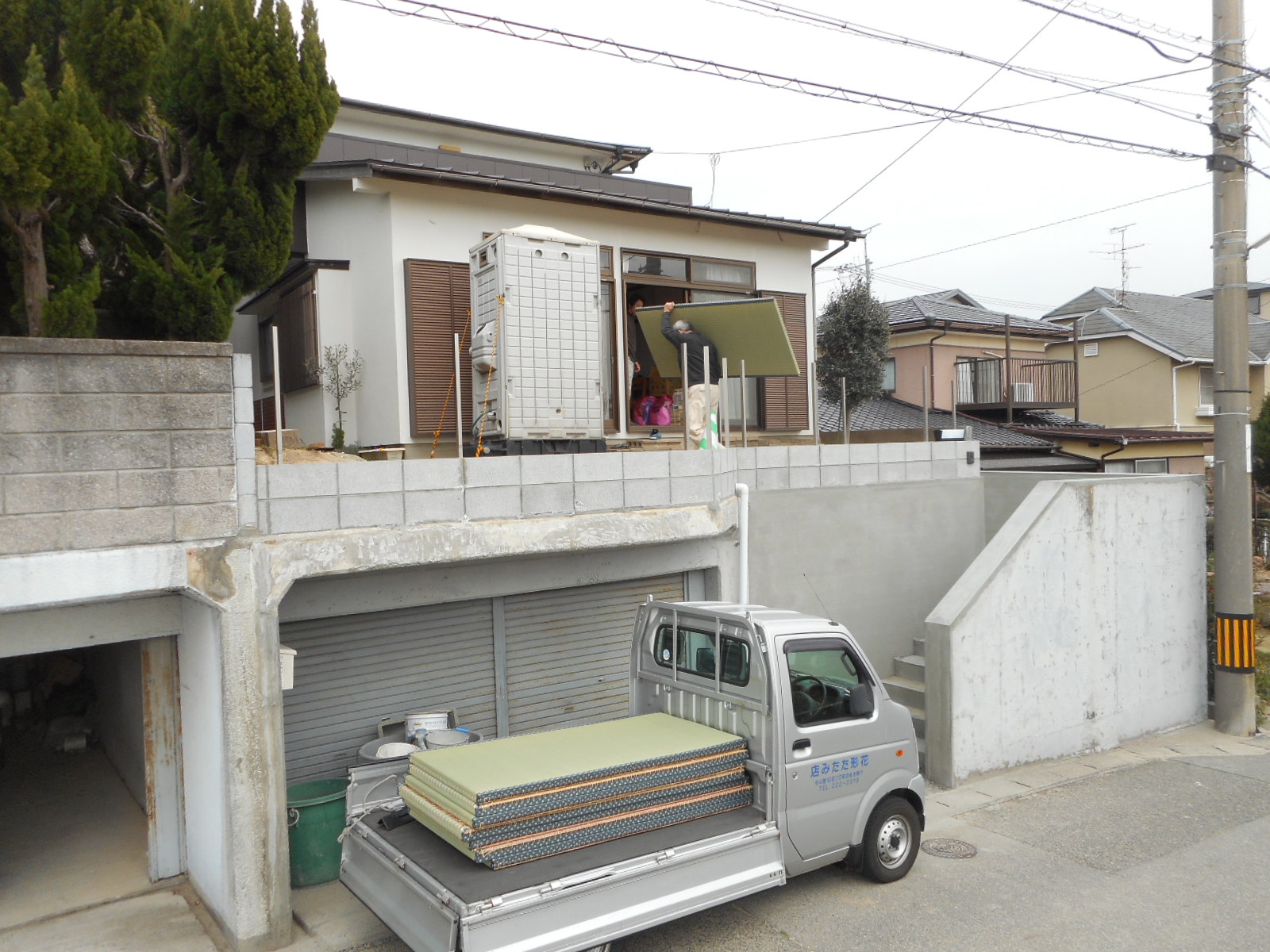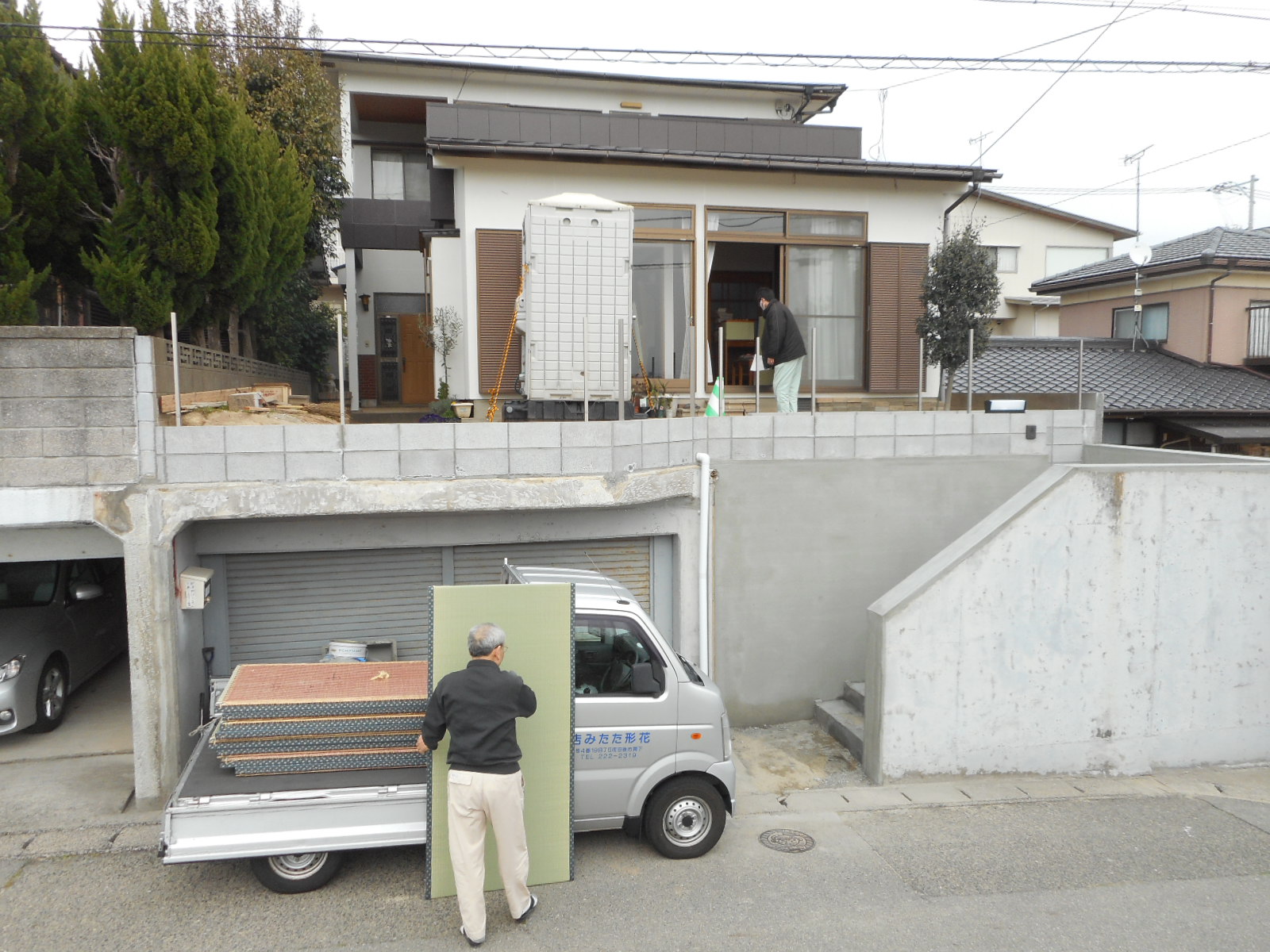 | 表替えをした畳を持って、畳屋さんが到着しました!! | 広縁から、畳を運び入れます!! |