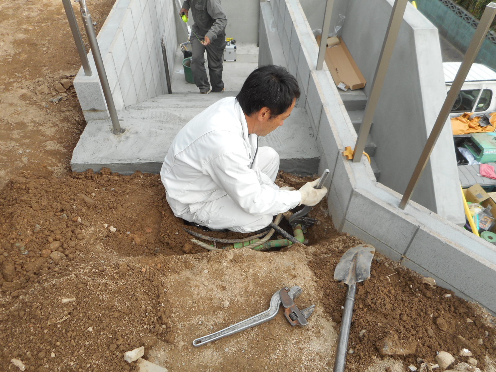 階段廻りの改修を進めていて、外のガス管の状態が悪いことが判明しましたので、施主さんと相談をし、ガス管を交換、整備することにしました。