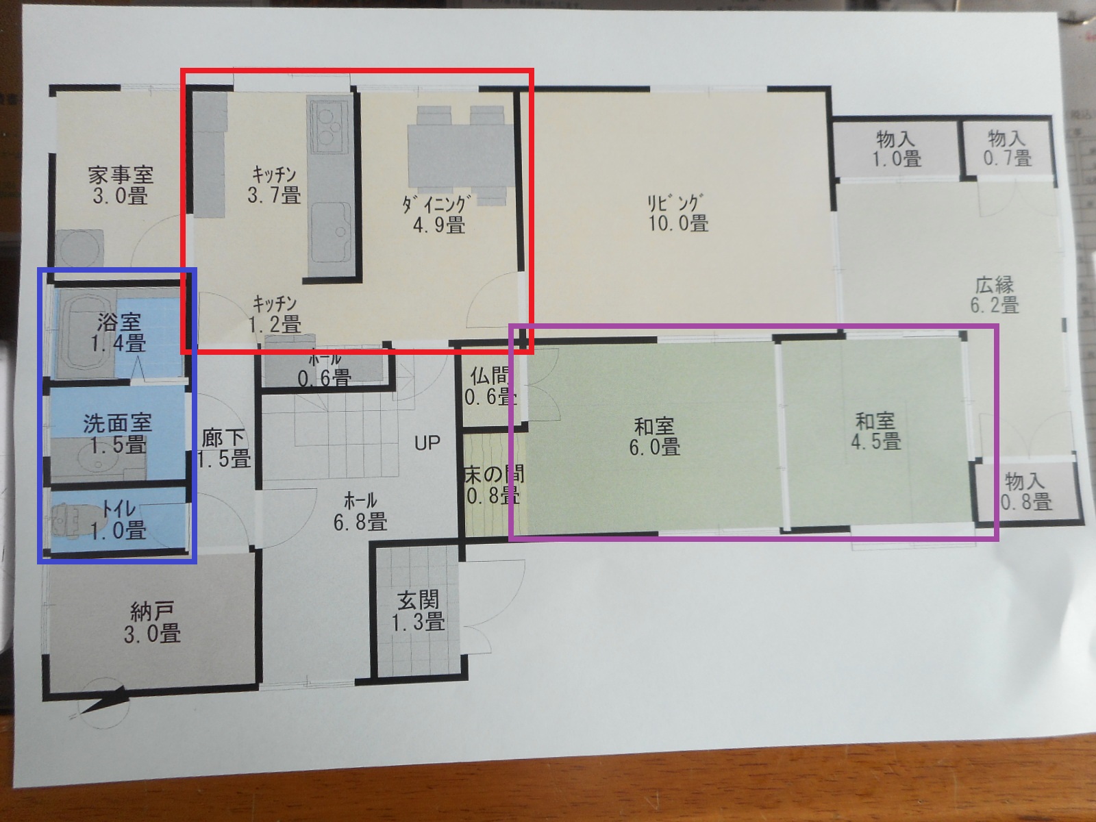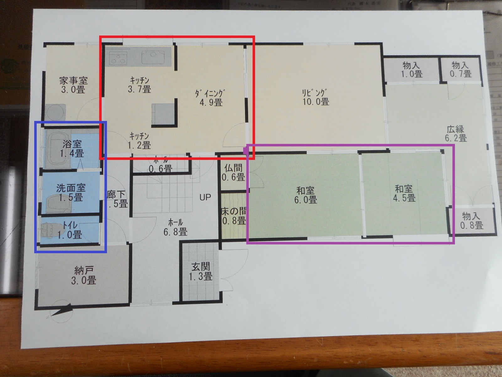 □部分のキッチンとダイニングは大幅に図面の様に間取りを替え、システムキッチン