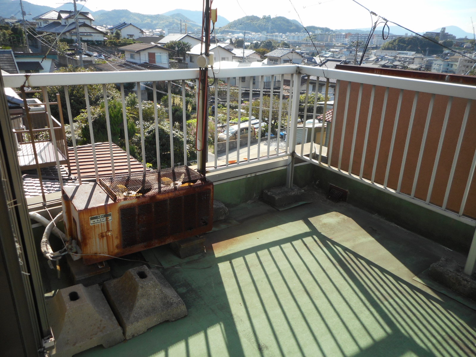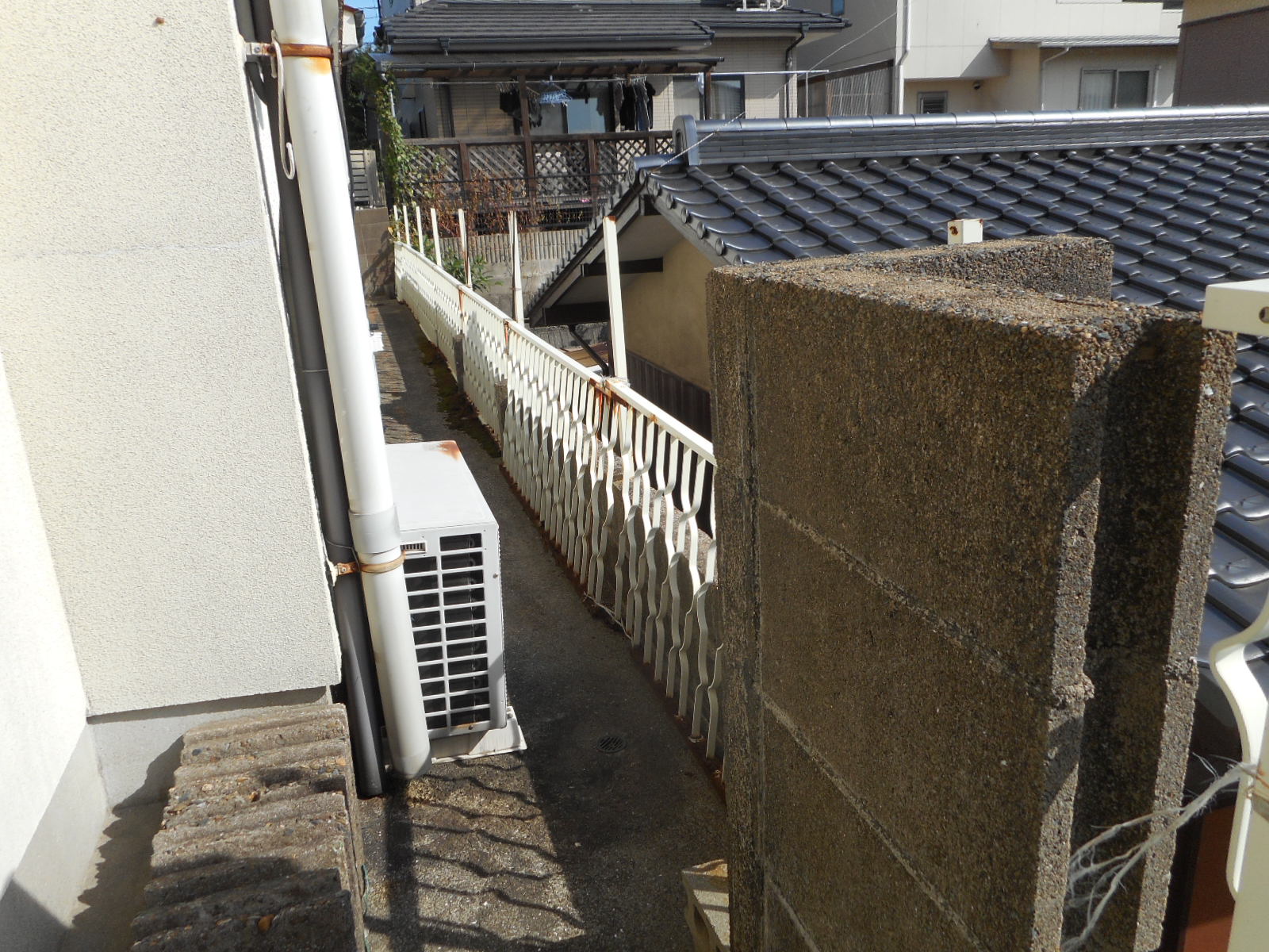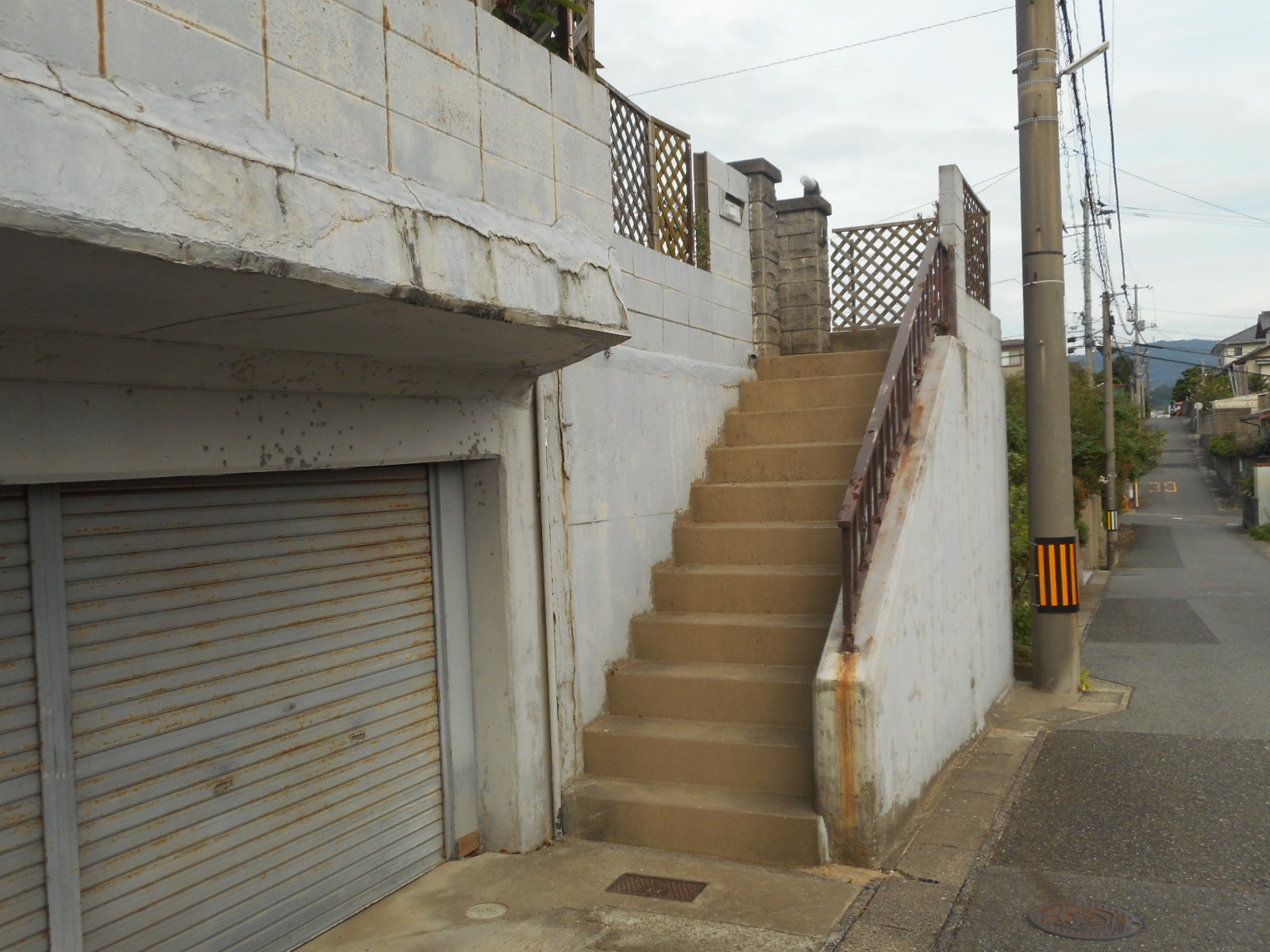 床の防水工事を行い、前の立ち上がり壁を改修し、既設手摺りを撤去し両側に新規の手摺りを取付けました。