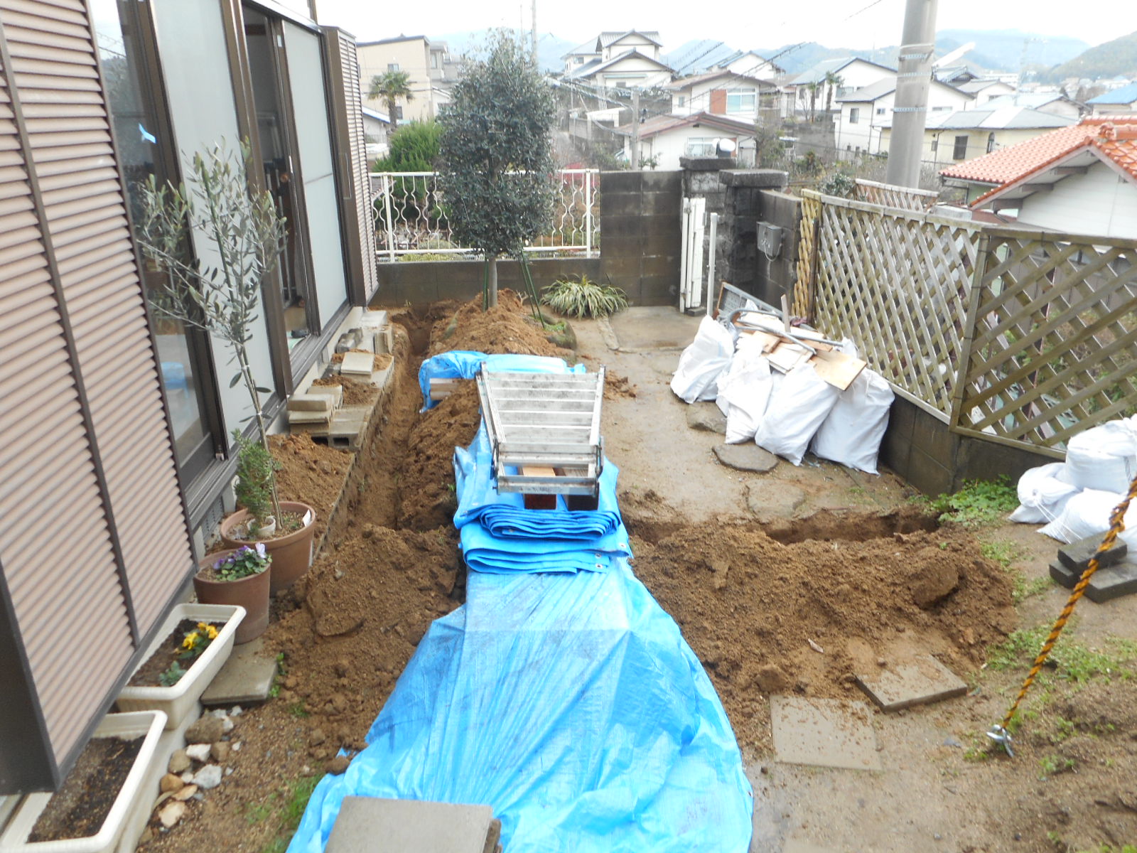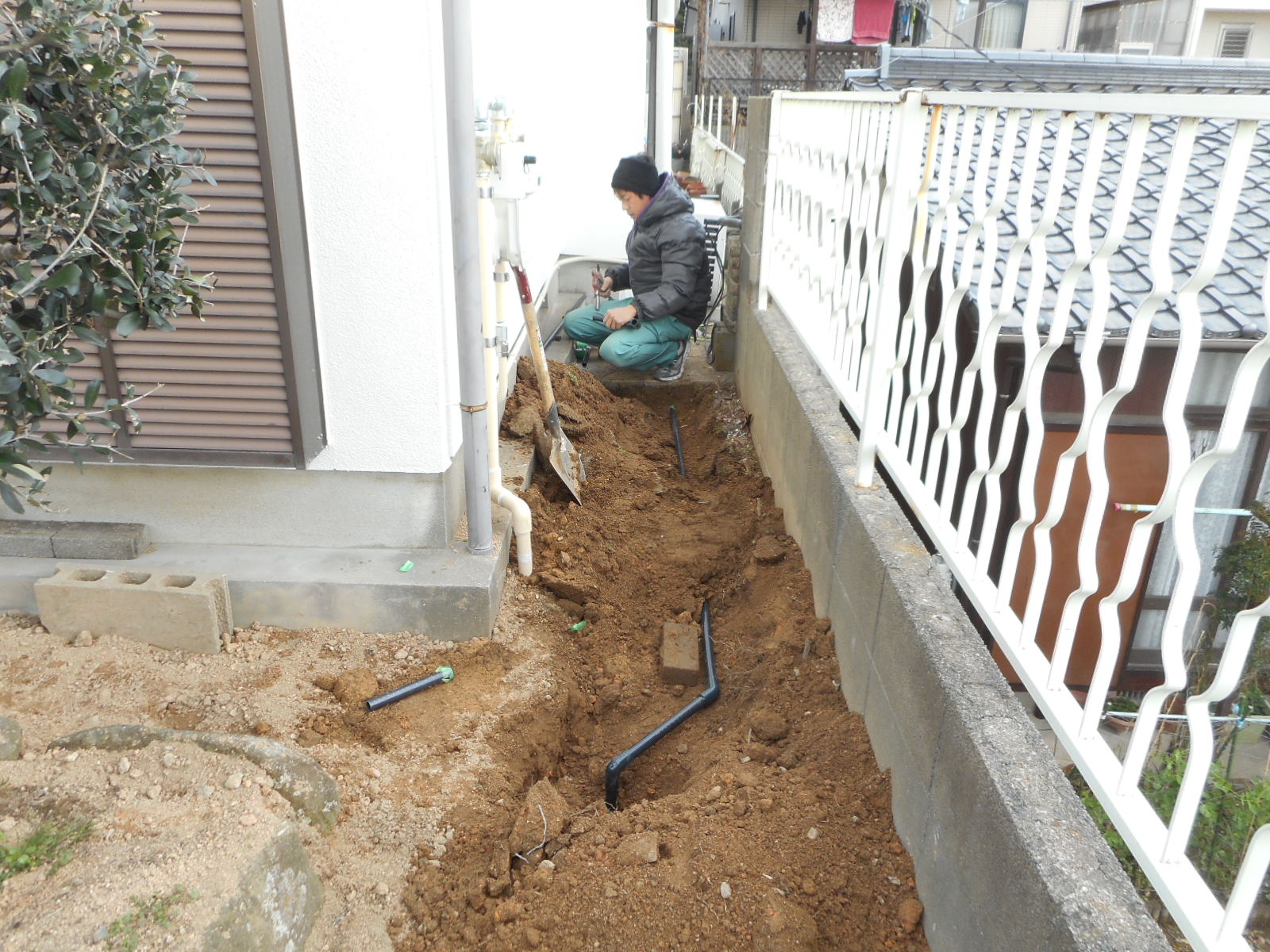 敷地内で漏水が有り、既設給水管の状態が良くないので、量水計からすべて引替える工事を行いました。