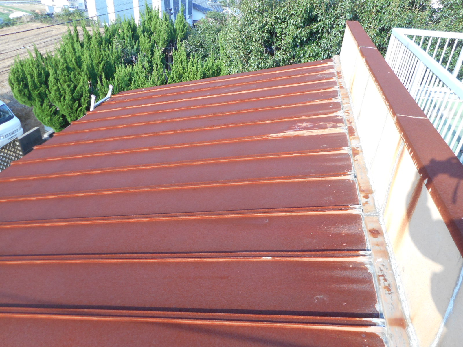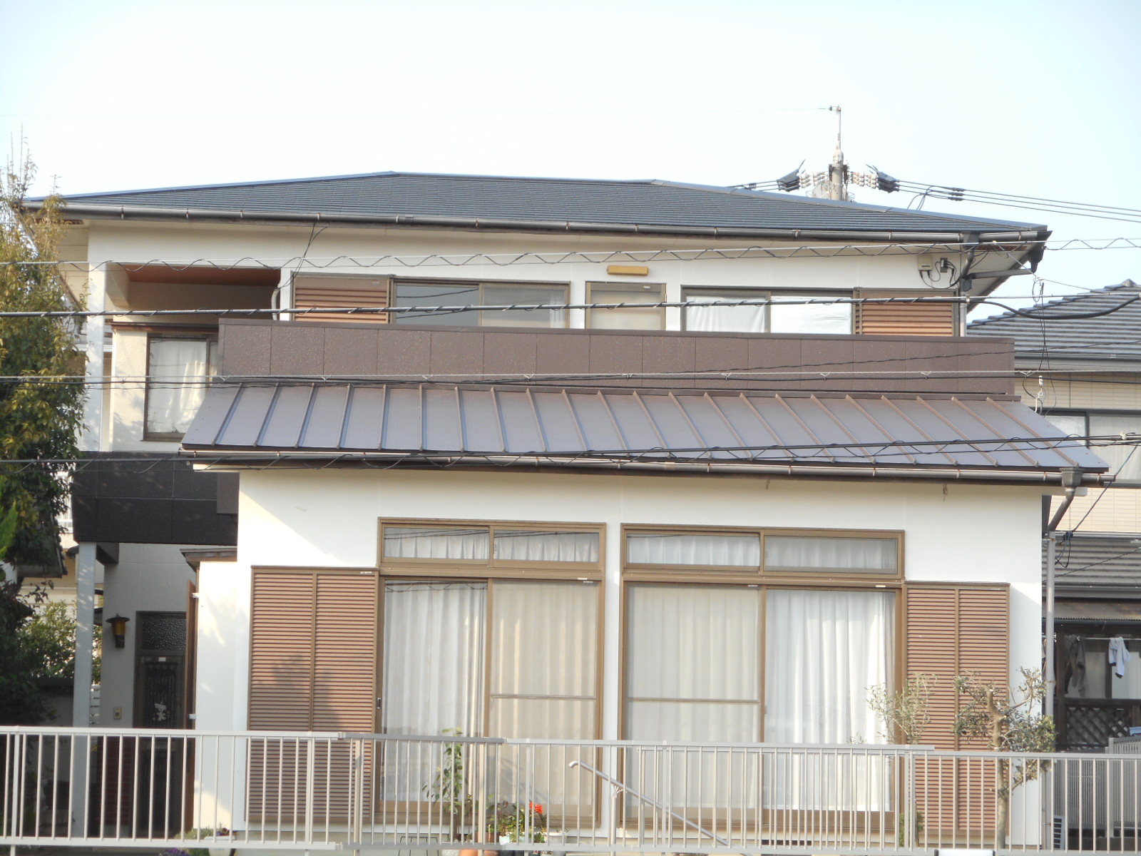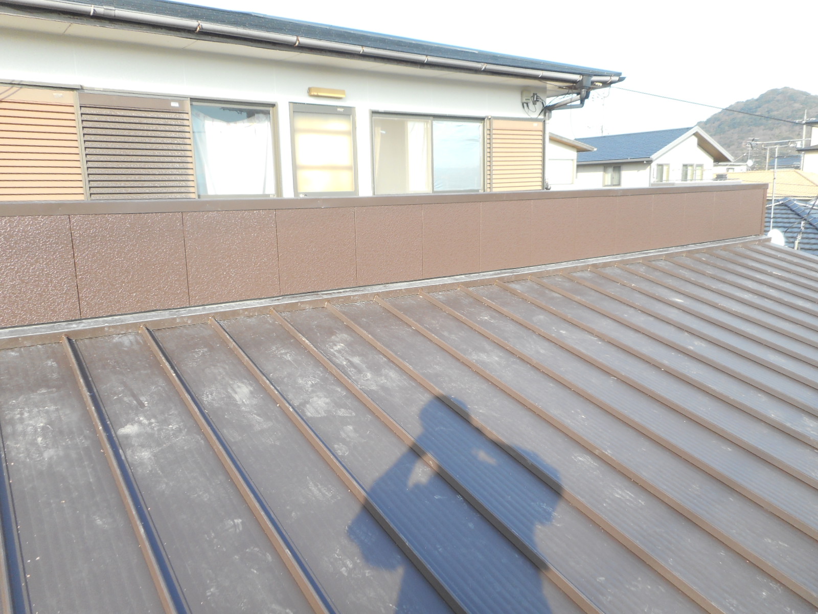既存庇の屋根の板金を撤去後、新規の板金を施工しました。